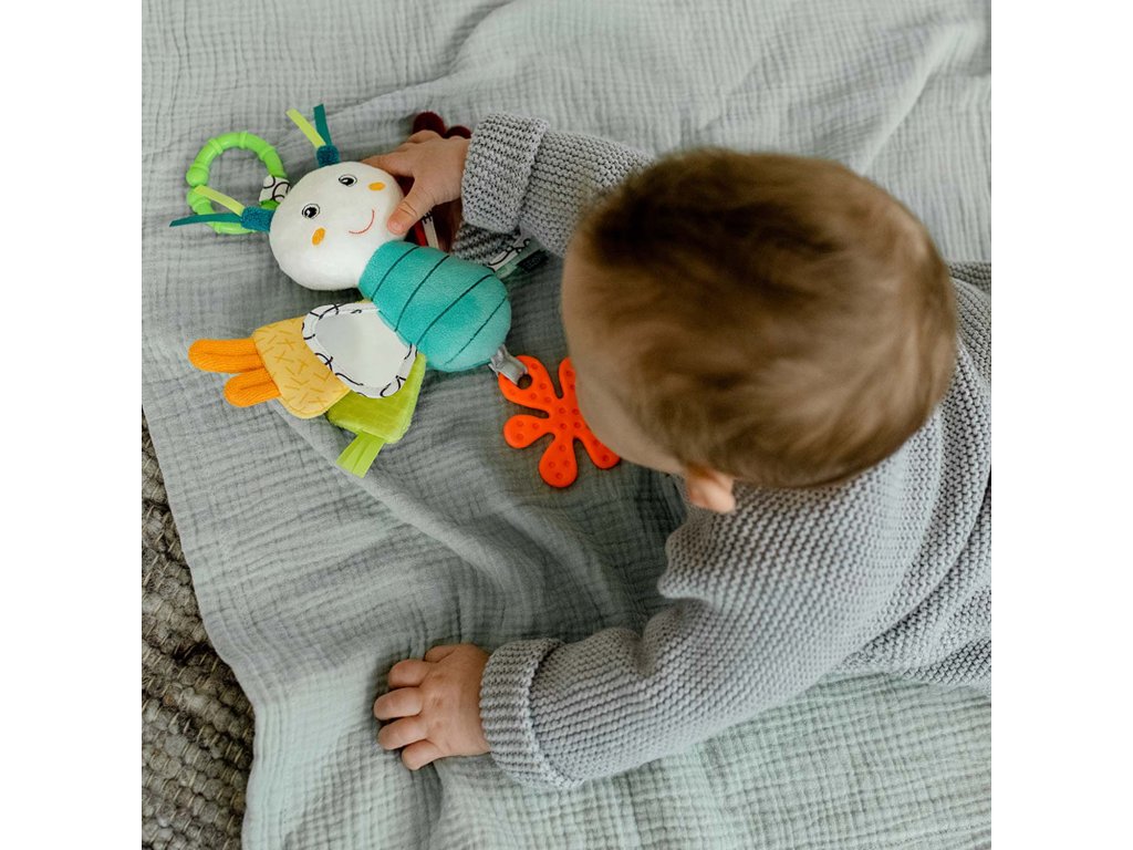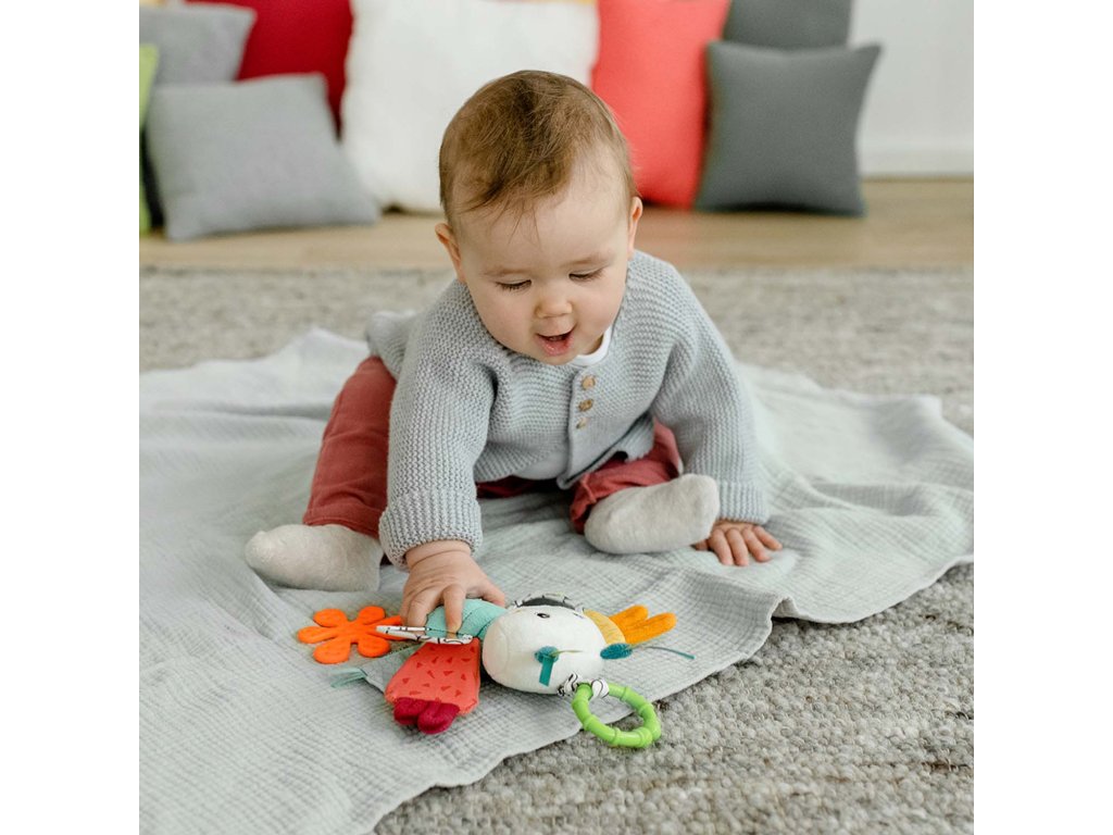 Hračku je možné pomocou praktického C-krúžku pripevniť na kočík, detskú autosedačku alebo postieľku.