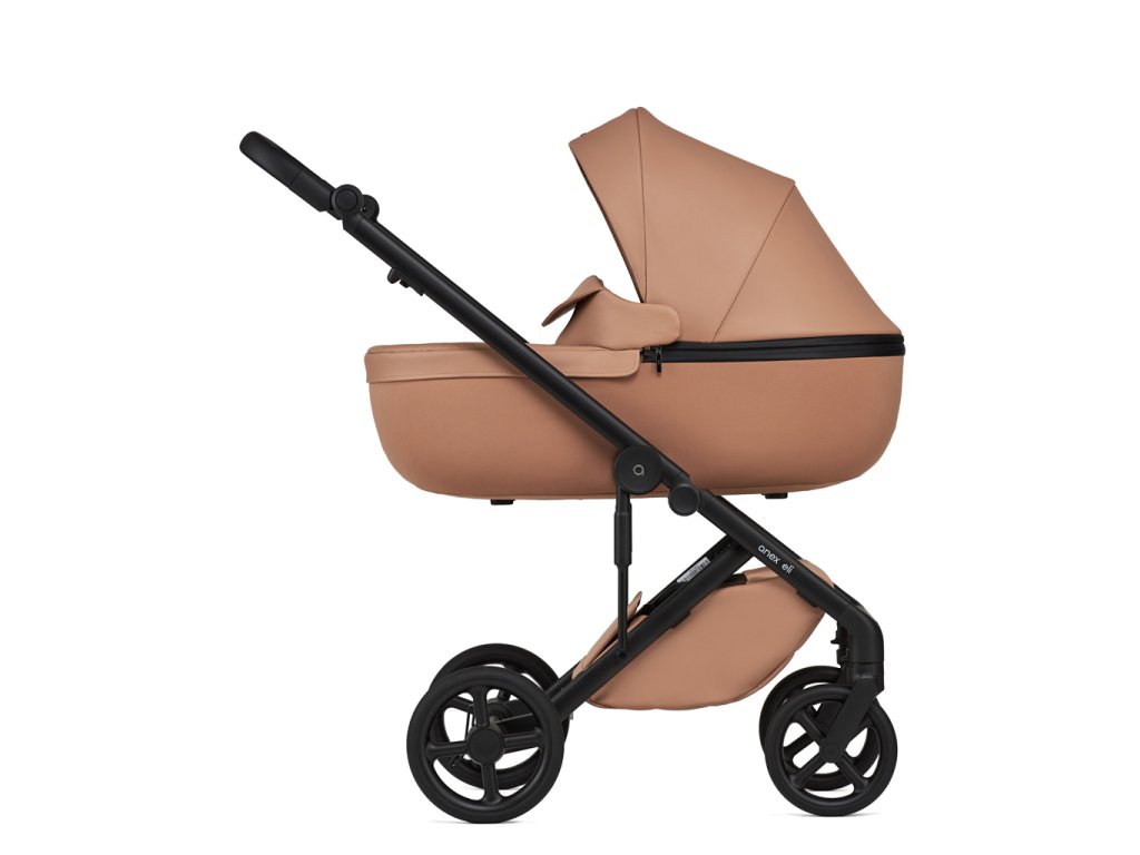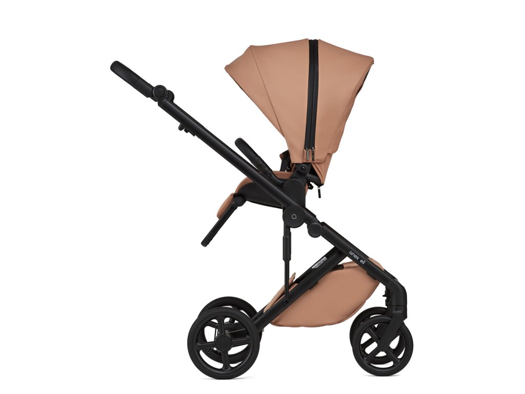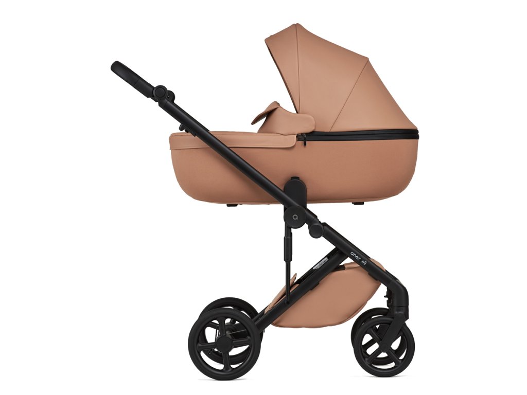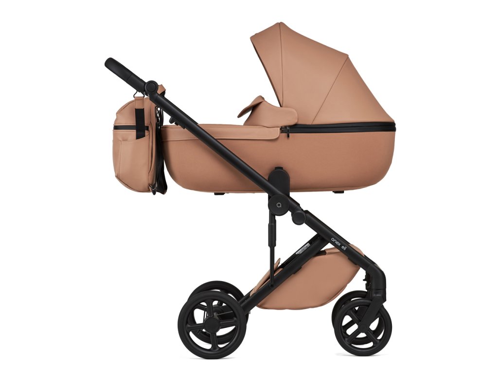 Anex Eli je vytvorený s ohľadom na ergonómiu, aby zabezpečil rodičom nekompromisný zážitok z dizajnu a funkčnosti. S ekokožou pôsobí kočík prirodzene a úžasne elegantne. Malé, ale pevné kolesá zaisťujú plynulý pohyb po meste, zatiaľ čo kompaktná a praktická taška obsahuje všetky potrebné veci pre rodičov a deti pri cestovaní. Jednoduché odňatie. Jednoducho stlačte tlačidlá a bez námahy odpojte vaničku alebo sedadlo. Pamäťový systém v adaptéroch udrží tlačidlá zapnuté, kým bez námahy nezdvihnete vaničku alebo športovú sedaciu časť. Nastavenie výšky vaničky a športovej sedačky. Aby sa zabezpečilo pohodlie pre rodiny s rôznou výškou, súčasťou súpravy sú adaptéry na výšku vaničky a sedadlo. Umožňujú v prípade potreby zdvihnúť vaničku a športovú časť o 8,5 cm. Pohodlný priestor na spanie. Novorodenci si v priestrannej vaničke užijú sladké sny vďaka mäkkej prírodnej bambusovej tkanine a dokonale hladkému dnu z EPP. Pre väčšie pohodlie môžete otvoriť ventiláciu na spodnej časti vaničky. Vlastnosti: Flexi kolesá Mäkké, ľahké a odolné voči opotrebovaniu, tieto PU kolesá sú navrhnuté pre dlhú životnosť a flexibilitu. Neobsahujú žiadne nafukovacie duše, takže nevyžadujú údržbu a nehrozí riziko defektu. Epp Materiál Materiál EPP je 100 % recyklovateľný a ľahší ako štandardné plasty. Vďaka pevnosti materiálu EPP sa používa aj pri výrobe autosedačiek, bezpečnostných prilieb a vozidiel. Sorona matrac Matrac je vyplnený úplne prírodným materiálom Sorona, ktorý sa získava z kukurice. Tento matrac je nielen priedušný, ale aj antibakteriálny a šetrný k životnému prostrediu. Je mäkký a príjemný na dotyk a je 100% bezpečný pre deti. Poloha pre novorodencov Postará sa o chrbátik Vášho dieťaťa, operadlo sedadla sa dá znížiť, aby sa prispôsobilo novorodencom. Vlastná mikroklíma Materiál EPP vo vaničke sa vyznačuje vynikajúcou teplotnou odolnosťou a izolačnými vlastnosťami, čím vytvára dokonalú mikroklímu. Udržuje vaše dieťatko v teple počas zimy a v chlade počas leta, čím zabezpečuje optimálne pohodlie po celý rok. X-lock Automatický ochranný systém udržiava rám bezpečne na mieste a zabraňuje náhodnému zloženiu. Ochrana látky Nemusíte sa báť dažďa ani slnka - kočík má vodoodpudivú úpravu, ktorá ho udrží v suchu, a technológiu UV 50+, ktorá ho chráni pred slnkom. Comfy stop Ergonomický brzdový systém umožňuje jednoduché zastavenie a rozbehnutie kočíka bez poškodenia obuvi. Odnímateľné madlo Madlo kočíka je možné jednoducho pripevniť a odpojiť jednou rukou – ideálne pre rýchlu manipuláciu počas prechádzok. Easy lock Predné kolesá je možné jediným tlačidlom zafixovať v jednej polohe. Anti-wobble Systém proti kývaniu zabraňuje vibráciám kolies počas pohybu kočíka a zaisťuje priamu a plynulú jazdu. Komfortný ergo dizajn Kočík je navrhnutý podľa ergonomických princípov, ktoré uprednostňujú pohodlie a komfort rodiča aj dieťaťa počas celej cesty od dojčenského veku až do štyroch rokov. Premyslene navrhnutý rám a sedacia časť zabezpečujú ľahký prístup k dieťaťu a zároveň poskytujú rodičom dostatok priestoru na prechádzanie. Technické parametre - Rozmery rozloženého kočíka (s vaničkou a výškovými adaptérmi) : 101,5 x 59 x 117,5 cm - Rozmery rozloženého kočíka (s vaničkou a bez výškových adaptérov) : 101,5 x 59 x 109 cm - Rozmery rozloženého kočíka (so sedacou časťou a výškovými adaptérmi) : 101,5 x 59 x 114 cm - Rozmery rozloženého kočíka (so sedacou časťou a bez výškových adaptérov) : 101,5 x 59 x103,5 cm - Váha vaničky: 3,4 kg - Váha sedacej časti: 3,4 kg - Váha kočíka: 10,5 kg Vek a hmotnosť dieťaťa - Odporúčanie: 0+ - Maximálna váha dieťaťa vo vaničke: 9 kg - Maximálna váha dieťaťa v sedacej časti: 22 kg Podvozok - Rozmery zloženého podvozku (so sedacou časťou) : 30 x 59 x 74 cm - Veľkosť predných kolies : 20 cm - Veľkosť zadných kolies : 23,6 cm - Materiál kolies: PU - Materiál podvozku: hliník - Rukoväť: výškovo nastaviteľná z ekokože - 3x odpruženie (rám, predné kolesá, zadné kolesá) - Nosnosť košíka: max. 10 kg Vanička - Vnútorné rozmery: 79 x 33 x 15 cm - Strieška: nastaviteľná - Matrac: vyplnený úplne prírodným materiálom Sorona, získaným z kukurice. Tento matrac je nielen priedušný, ale je aj antibakteriálny a šetrný k životnému prostrediu. Je mäkký a príjemný na dotyk a je 100% bezpečný pre deti. - Materiál: ekokoža - polyester - Ventilácia v spodnej časti korbičky a striešky Športová časť - Šírka: 32 cm - Dĺžka: 90 cm - Opierka nožičiek: nastaviteľná - Strieška: nastaviteľná - Madlo: odnímateľné - Materiál sedačky: polyester - Vnútorné popruhy: 5-bodový bezpečnostný systém s magnetickou prackou Obsahuje: vaničku, športovú časť, zvyšovacie adaptéry, elegantný batoh, pláštenku, moskytiéru, madlo. Súčasťou kočíka je tiež autosedačka Kiddy Evoluna i-size 2 spolu s isofix základňou. Ocenenia a certifikáty a laboratóriá Kočíky Anex sú testované a certifikované podľa európskych noriem. Získali niekoľko ocenení, pretože tvrdo pracujú na tom, aby kočíky spĺňali všetky požiadavky na bezpečnosť, stabilitu a životnosť. e/type zodpovedá novej norme EN 1888-1:2018+A1:2022 / EN 1888-2:2018+A1:2022 a je určený pre deti s hmotnosťou do 22 kg (do 4 rokov). Upozornenie! Nikdy nenechávajte svoje dieťa bez dozoru. Pred použitím sa uistite, že všetky uzamykacie zariadenia sú zaistené. Tento kočík sa môže stať nevyváženým, ak na jeho rukoväť, alebo zadnú časť opierky, a/alebo bočné časti pripevníte akékoľvek ďalšie zaťaženie. Nedoporučuje sa vkladať ďalšie vystuženie do tejto vaničky/kočíka. Vanička je u