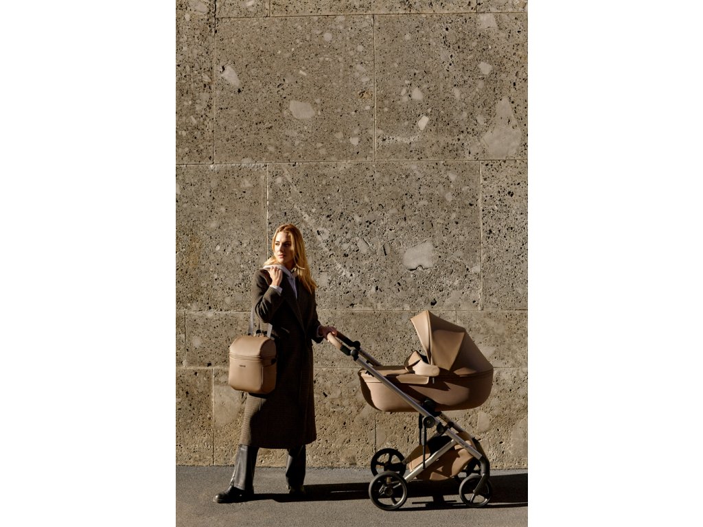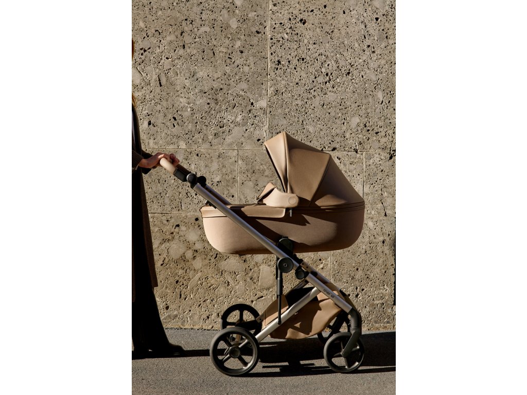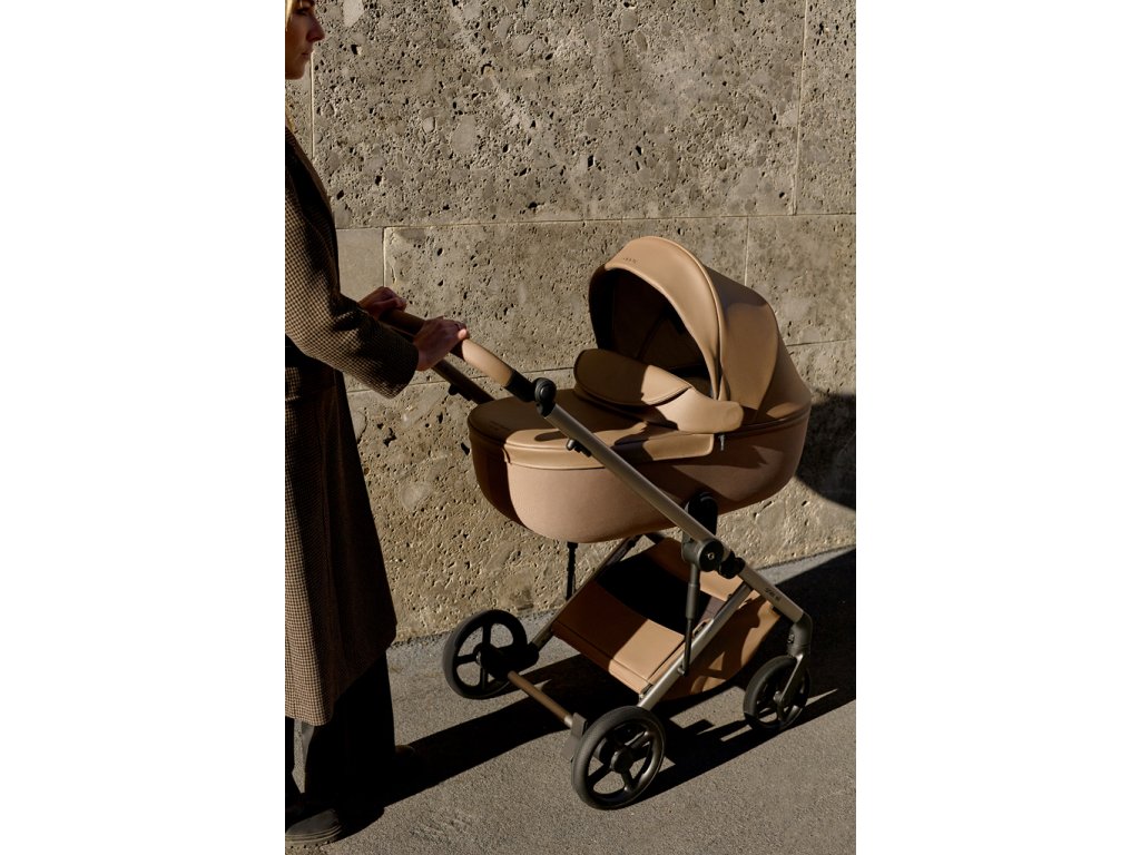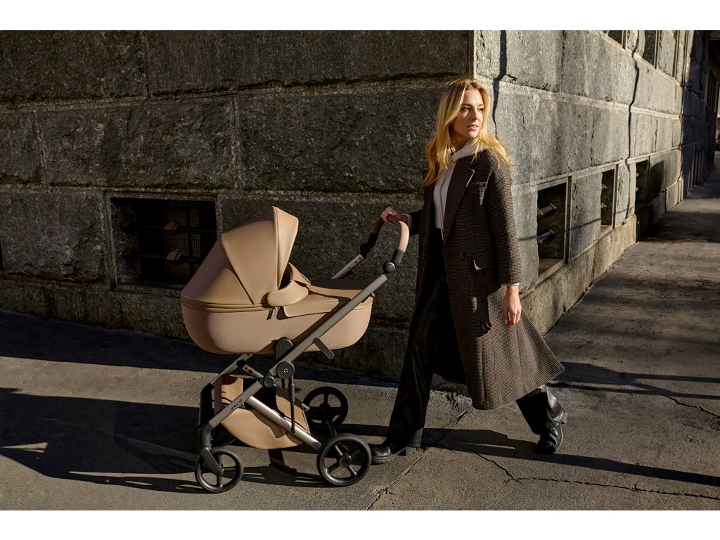 Anex Eli je vytvorený s ohľadom na ergonómiu, aby zabezpečil rodičom nekompromisný zážitok z dizajnu a funkčnosti. S ekokožou pôsobí kočík prirodzene a úžasne elegantne. Malé, ale pevné kolesá zaisťujú plynulý pohyb po meste, zatiaľ čo kompaktná a praktická taška obsahuje všetky potrebné veci pre rodičov a deti pri cestovaní. Jednoduché odňatie. Jednoducho stlačte tlačidlá a bez námahy odpojte vaničku alebo sedadlo. Pamäťový systém v adaptéroch udrží tlačidlá zapnuté, kým bez námahy nezdvihnete vaničku alebo športovú sedaciu časť. Nastavenie výšky vaničky a športovej sedačky. Aby sa zabezpečilo pohodlie pre rodiny s rôznou výškou, súčasťou súpravy sú adaptéry na výšku vaničky a sedadlo. Umožňujú v prípade potreby zdvihnúť vaničku a športovú časť o 8,5 cm. Pohodlný priestor na spanie. Novorodenci si v priestrannej vaničke užijú sladké sny vďaka mäkkej prírodnej bambusovej tkanine a dokonale hladkému dnu z EPP. Pre väčšie pohodlie môžete otvoriť ventiláciu na spodnej časti vaničky. Vlastnosti: Flexi kolesá Mäkké, ľahké a odolné voči opotrebovaniu, tieto PU kolesá sú navrhnuté pre dlhú životnosť a flexibilitu. Neobsahujú žiadne nafukovacie duše, takže nevyžadujú údržbu a nehrozí riziko defektu. Epp Materiál Materiál EPP je 100 % recyklovateľný a ľahší ako štandardné plasty. Vďaka pevnosti materiálu EPP sa používa aj pri výrobe autosedačiek, bezpečnostných prilieb a vozidiel. Sorona matrac Matrac je vyplnený úplne prírodným materiálom Sorona, ktorý sa získava z kukurice. Tento matrac je nielen priedušný, ale aj antibakteriálny a šetrný k životnému prostrediu. Je mäkký a príjemný na dotyk a je 100% bezpečný pre deti. Poloha pre novorodencov Postará sa o chrbátik Vášho dieťaťa, operadlo sedadla sa dá znížiť, aby sa prispôsobilo novorodencom. Vlastná mikroklíma Materiál EPP vo vaničke sa vyznačuje vynikajúcou teplotnou odolnosťou a izolačnými vlastnosťami, čím vytvára dokonalú mikroklímu. Udržuje vaše dieťatko v teple počas zimy a v chlade počas leta, čím zabezpečuje optimálne pohodlie po celý rok. X-lock Automatický ochranný systém udržiava rám bezpečne na mieste a zabraňuje náhodnému zloženiu. Ochrana látky Nemusíte sa báť dažďa ani slnka - kočík má vodoodpudivú úpravu, ktorá ho udrží v suchu, a technológiu UV 50+, ktorá ho chráni pred slnkom. Comfy stop Ergonomický brzdový systém umožňuje jednoduché zastavenie a rozbehnutie kočíka bez poškodenia obuvi. Odnímateľné madlo Madlo kočíka je možné jednoducho pripevniť a odpojiť jednou rukou – ideálne pre rýchlu manipuláciu počas prechádzok. Easy lock Predné kolesá je možné jediným tlačidlom zafixovať v jednej polohe. Anti-wobble Systém proti kývaniu zabraňuje vibráciám kolies počas pohybu kočíka a zaisťuje priamu a plynulú jazdu. Komfortný ergo dizajn Kočík je navrhnutý podľa ergonomických princípov, ktoré uprednostňujú pohodlie a komfort rodiča aj dieťaťa počas celej cesty od dojčenského veku až do štyroch rokov. Premyslene navrhnutý rám a sedacia časť zabezpečujú ľahký prístup k dieťaťu a zároveň poskytujú rodičom dostatok priestoru na prechádzanie. Technické parametre - Rozmery rozloženého kočíka (s vaničkou a výškovými adaptérmi) : 101,5 x 59 x 117,5 cm - Rozmery rozloženého kočíka (s vaničkou a bez výškových adaptérov) : 101,5 x 59 x 109 cm - Rozmery rozloženého kočíka (so sedacou časťou a výškovými adaptérmi) : 101,5 x 59 x 114 cm - Rozmery rozloženého kočíka (so sedacou časťou a bez výškových adaptérov) : 101,5 x 59 x103,5 cm - Váha vaničky: 3,4 kg - Váha sedacej časti: 3,4 kg - Váha kočíka: 10,5 kg Vek a hmotnosť dieťaťa - Odporúčanie: 0+ - Maximálna váha dieťaťa vo vaničke: 9 kg - Maximálna váha dieťaťa v sedacej časti: 22 kg Podvozok - Rozmery zloženého podvozku (so sedacou časťou) : 30 x 59 x 74 cm - Veľkosť predných kolies : 20 cm - Veľkosť zadných kolies : 23,6 cm - Materiál kolies: PU - Materiál podvozku: hliník - Rukoväť: výškovo nastaviteľná z ekokože - 3x odpruženie (rám, predné kolesá, zadné kolesá) - Nosnosť košíka: max. 10 kg Vanička - Vnútorné rozmery: 79 x 33 x 15 cm - Strieška: nastaviteľná - Matrac: vyplnený úplne prírodným materiálom Sorona, získaným z kukurice. Tento matrac je nielen priedušný, ale je aj antibakteriálny a šetrný k životnému prostrediu. Je mäkký a príjemný na dotyk a je 100% bezpečný pre deti. - Materiál: ekokoža - polyester - Ventilácia v spodnej časti korbičky a striešky Športová časť - Šírka: 32 cm - Dĺžka: 90 cm - Opierka nožičiek: nastaviteľná - Strieška: nastaviteľná - Madlo: odnímateľné - Materiál sedačky: polyester - Vnútorné popruhy: 5-bodový bezpečnostný systém s magnetickou prackou Obsahuje: vaničku, športovú časť, zvyšovacie adaptéry, elegantný batoh, pláštenku, moskytiéru, madlo. Súčasťou kočíka je tiež autosedačka Kiddy Evoluna i-size 2 spolu s isofix základňou. Ocenenia a certifikáty a laboratóriá Kočíky Anex sú testované a certifikované podľa európskych noriem. Získali niekoľko ocenení, pretože tvrdo pracujú na tom, aby kočíky spĺňali všetky požiadavky na bezpečnosť, stabilitu a životnosť. e/type zodpovedá novej norme EN 1888-1:2018+A1:2022 / EN 1888-2:2018+A1:2022 a je určený pre deti s hmotnosťou do 22 kg (do 4 rokov). Upozornenie! Nikdy nenechávajte svoje dieťa bez dozoru. Pred použitím sa uistite, že všetky uzamykacie zariadenia sú zaistené. Tento kočík sa môže stať nevyváženým, ak na jeho rukoväť, alebo zadnú časť opierky, a/alebo bočné časti pripevníte akékoľvek ďalšie zaťaženie. Nedoporučuje sa vkladať ďalšie vystuženie do tejto vaničky/kočíka. Vanička je u