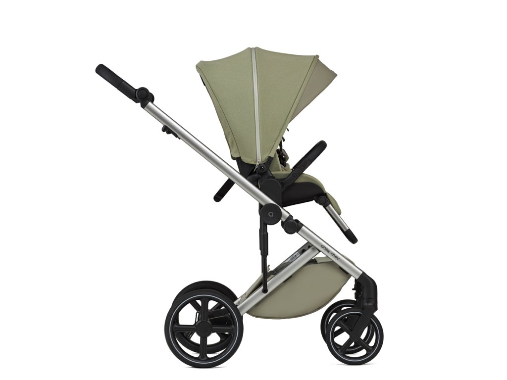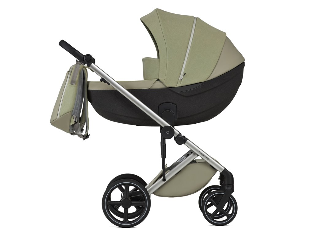Kočík Mev bol vytvorený s ohľadom na ergonómiu a jednoduchosť používania a je navrhnutý tak, aby vás sprevádzal pri všetkých vašich obľúbených životných aktivitách. Jednoduché odňatie. Jednoducho stlačte tlačidlá a bez námahy odpojte vaničku alebo sedadlo. Pamäťový systém v adaptéroch udrží tlačidlá zapnuté, kým bez námahy nezdvihnete vaničku alebo športovú časť. Nastavenie výšky vaničky a športovej sedačky. Aby sa zabezpečilo pohodlie pre rodiny s rôznou výškou, súčasťou súpravy sú adaptéry na výšku vaničky a sedacej jednotky. Umožňujú v prípade potreby zdvihnúť vaničku a športovú časť o 8,5 cm. Pohodlný priestor na spanie. Novorodenci si v priestrannej vaničke užijú sladké sny vďaka mäkkej prírodnej bambusovej tkanine a dokonale hladkému dnu z EPP. Pre väčšie pohodlie môžete otvoriť ventiláciu na spodnej časti vaničky. Vlastnosti: Flexi kolesá Mäkké, ľahké a odolné voči opotrebovaniu, tieto PU kolesá sú navrhnuté pre dlhú životnosť a flexibilitu. Neobsahujú žiadne nafukovacie duše, takže nevyžadujú údržbu a nehrozí riziko defektu. Epp vanička Materiál EPP je 100 % recyklovateľný a ľahší ako štandardné plasty. Vďaka pevnosti materiálu EPP sa používa aj pri výrobe autosedačiek, bezpečnostných prilieb a vozidiel. Sorona matrac Matrac je vyplnený úplne prírodným materiálom Sorona, ktorý sa získava z kukurice. Tento matrac je nielen priedušný, ale aj antibakteriálny a šetrný k životnému prostrediu. Je mäkký a príjemný na dotyk a je 100% bezpečný pre deti. Poloha pre novorodencov Postará sa o chrbátik Vášho dieťaťa, operadlo sedadla sa dá znížiť, aby sa prispôsobilo novorodencom. Veľká predĺžená strieška Udržte svoje dieťa v suchu a chráňte ho pred neočakávaným počasím pomocou striešky, ktorá obsahuje ďalšiu časť, ktorá úplne zakryje vaše dieta. Magnetická spona Ramenné vypchávky sa dajú jednoducho nastaviť a zaistiť pomocou gombíkov. Magnetický zámok zaisťuje bezpečné umiestnenie pásov, zatiaľ čo mäkké ramenné vypchávky zaručujú optimálne pohodlie bez ohrozenia bezpečnosti. Vlastná mikroklíma Materiál EPP vo vaničke sa vyznačuje vynikajúcou teplotnou odolnosťou a izolačnými vlastnosťami, čím vytvára dokonalú mikroklímu. Udržuje vaše dieťatko v teple počas zimy a v chlade počas leta, čím zabezpečuje optimálne pohodlie po celý rok. X-lock Automatický ochranný systém udržiava rám bezpečne na mieste a zabraňuje náhodnému zloženiu. Ochrana látky Nemusíte sa báť dažďa ani slnka - kočík má vodoodpudivú úpravu, ktorá ho udrží v suchu, a technológiu UV 50+, ktorá ho chráni pred slnkom. Comfy stop Ergonomický brzdový systém umožňuje jednoduché zastavenie a rozbehnutie kočíka bez poškodenia obuvi. Odnímateľné madlo Madlo kočíka je možné jednoducho pripevniť a odpojiť jednou rukou – ideálne pre rýchlu manipuláciu počas prechádzok. Easy lock Predné kolesá je možné jediným tlačidlom zafixovať v jednej polohe. Anti-wobble Systém proti kývaniu zabraňuje vibráciám kolies počas pohybu kočíka a zaisťuje priamu a plynulú jazdu. Komfortný ergo dizajn Kočík je navrhnutý podľa ergonomických princípov, ktoré uprednostňujú pohodlie a komfort rodiča aj dieťaťa počas celej cesty od dojčenského veku až do štyroch rokov. Premyslene navrhnutý rám a sedacia časť zabezpečujú ľahký prístup k dieťaťu a zároveň poskytujú rodičom dostatok priestoru na prechádzanie. Technické parametre - Rozmery rozloženého kočíka (s vaničkou a výškovými adaptérmi) : 106,5 x 59,5 x 123,5 cm - Rozmery rozloženého kočíka (s vaničkou a bez výškových adaptérov): 106,5 x 59,5 x 115 cm - Rozmery rozloženého kočíka (so sedacou časťou a výškovými adaptérmi): 106,5 x 59,5 x 114 cm - Rozmery rozloženého kočíka (so sedacou časťou a bez výškových adaptérov): 106,5 x 59,5 x 109 cm - Váha vaničky: 3,3 kg - Váha sedacej časti: 3,2 kg - Váha kočíka: 10,5 kg Vek a hmotnosť dieťaťa - Odporúčanie: 0+ - Maximálna váha dieťaťa vo vaničke: 9 kg - Maximálna váha dieťaťa v sedacej časti: 22 kg Podvozok - Rozmery zloženého podvozku (so sedacou časťou): 30,5 x 59,5 x 74,5 cm - Veľkosť predných kolies: 20 cm - Veľkosť zadných kolies: 27 cm - Materiál kolies: PU - Materiál podvozku: hliník - Rukoväť: výškovo nastaviteľná z ekokože - Nosnosť košíka: max. 10 kg Vanička - Vnútorné rozmery: 79 x 33 x 15 cm - Strieška: nastaviteľná - Matrac: vyplnený úplne prírodným materiálom Sorona, získaným z kukurice. Tento matrac je nielen priedušný, ale je aj antibakteriálny a šetrný k životnému prostrediu. Je mäkký a príjemný na dotyk a je 100% bezpečný pre deti. - Materiál: ekokoža - polyester - Ventilácia v spodnej časti vaničky a striešky Športová časť - Vnútorné rozmery: 32 x 41 x 50 cm - Opierka nožičiek: nastaviteľná - Strieška: nastaviteľná - Madlo: odnímateľné - Material: polyester - Vnútorné popruhy: 5-bodový bezpečnostný systém s magnetickou prackou Obsahuje: vaničku, športovú časť, zvyšovacie adaptéry, elegantný batoh, pláštenku, moskytiéru, madlo. Súčasťou kočíka je tiež autosedačka CYBEX Aton B2 i-Size spolu s isofix základňou. Ocenenia a certifikáty Kočíky Anex sú testované a certifikované podľa európskych noriem. Získali niekoľko ocenení, pretože tvrdo pracujú na tom, aby kočíky spĺňali všetky požiadavky na bezpečnosť, stabilitu a životnosť.. Mev zodpovedá novej norme EN 1888-1:2018+A1:2022 / EN 1888-2:2018+A1:2022 a je určený pre deti s hmotnosťou do 22 kg (do 4 rokov). Upozornenie! Nikdy nenechávajte svoje dieťa bez dozoru. Pred použitím sa uistite, že všetky uzamykacie zariadenia sú zaistené. Tento kočík sa môže stať nevyváženým, ak na jeho 