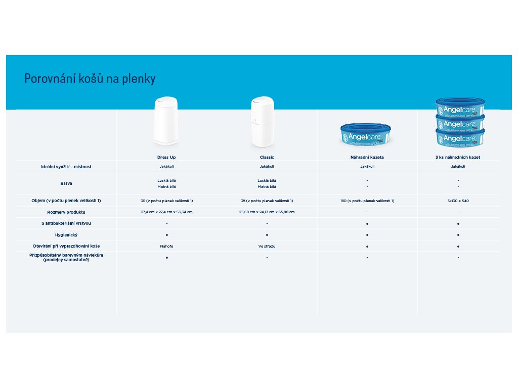 Kazeta je kompatibilná s košmi Angelcare Classic a Angelcare Dress Up.