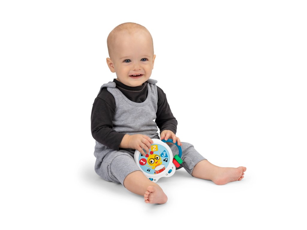 Pomôžte bábätku objavovať hudbu s hudobnou hračkou – bubnom Tiny Tempo. Tento ľahký a prenosný bubon obsahuje 21 reálnych zvukov nástrojov, 6 klasických melódií a dvojitý prstenec s korálkami, ktorý podporuje hudobné objavovanie, učenie sa princípu príčina–následok a rozvoj jemnej motoriky. Vďaka dvom herným režimom môže bábätko v režime Drum Play vytvárať jedinečné rytmy jednoduchým ťuknutím, alebo si v režime Melody zahrať spolu so 6 klasickými skladbami. Každé ťuknutie podporuje učenie príčina–následok. Hračka s korálkami pomáha rozvíjať obratnosť a jemnú motoriku. Farebné nálepky zoznamujú s farbami, číslami a tvarmi a obľúbený hudobný kamarát Cal the Caterpillar z kníh a videí Baby Einstein povzbudzuje bábätko pri hudobnom objavovaní. Bubon je ideálny na hudbu na cestách – je malý, ľahký, ľahko sa drží aj trasie a podporuje hudobné zapojenie v kočíku, na cestách aj pri hre doma. Vyžaduje 2 AA batérie. Čistí sa jednoducho utretím. Vlastnosti - Hudobná hračka Baby Einstein Tiny Tempo – bubon – ponúka 2 režimy hry na objavovanie hudby. Bábätko môže experimentovať s 21 zvukmi v režime Drum Mode, alebo si zahrať spolu so 6 prednahranými skladbami v režime Melody. - Dvojitý úchyt s korálkami zapája drobné prsty a podporuje rozvoj obratnosti a jemnej motoriky, ako je uchopovanie a držanie. - Prenosný a ľahký dizajn umožňuje, aby si ho bábätko vzalo so sebou kamkoľvek - Farebné nálepky zoznamujú s číslami, základnými tvarmi a primárnymi farbami. Čistí sa jednoducho utretím a vyžaduje 2 batérie typu AA. - Zloženie materiálu: 95 % plast, 5 % kov - Vekové rozpätie používateľa: 3 – 36 mesiacov - Rozmery po zložení (cm): 12,7 cm (V) x 13,0 cm (Š) x 2,79 cm (D) Upozornenie: Neponárajte do vody. Len pre použitie v rámci jednej rodiny. Pred odovzdaním produktu dieťaťu odstráňte všetok obalový materiál a upevňovacie prvky. Tento obal a návod si uschovajte pre budúce použitie – obsahuje dôležité informácie. Adresa dodávateľa: KIDS2 EUROPE BV 5 Keizersgracht 287, 1016 ED Amsterdam, Netherlands; +31 20 241 0934.Dodatočné parametre