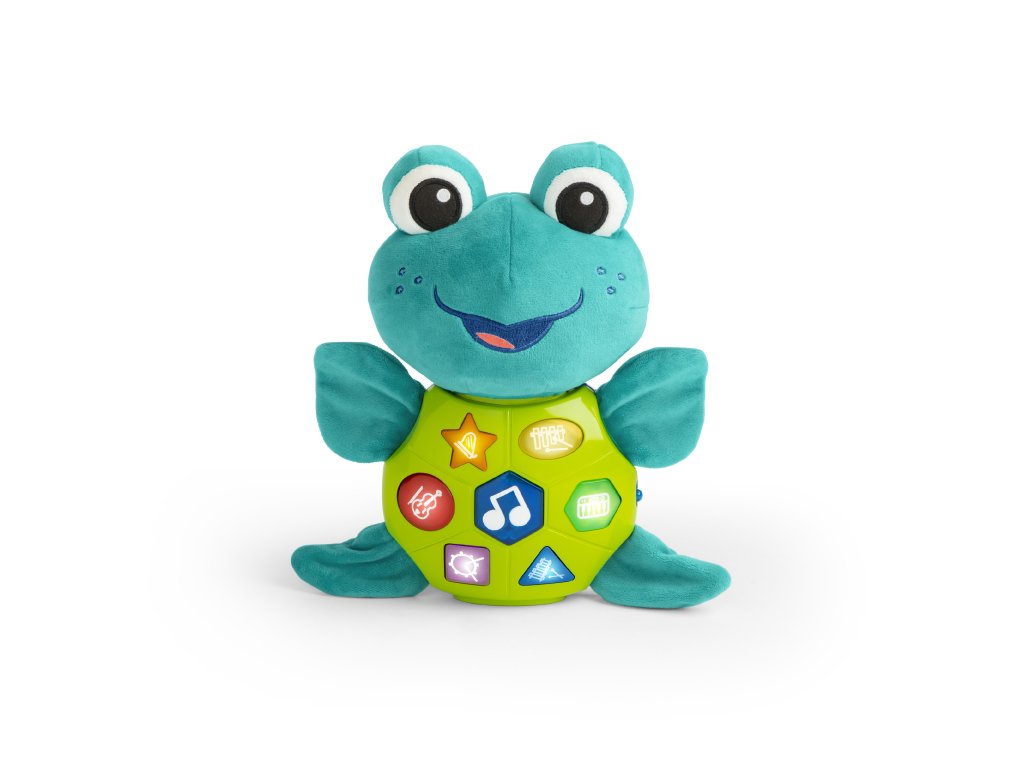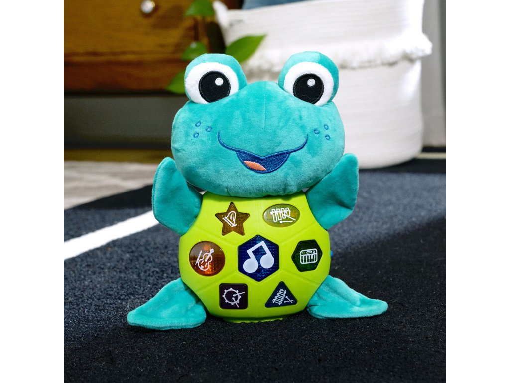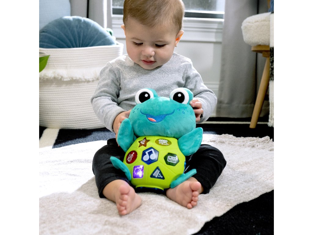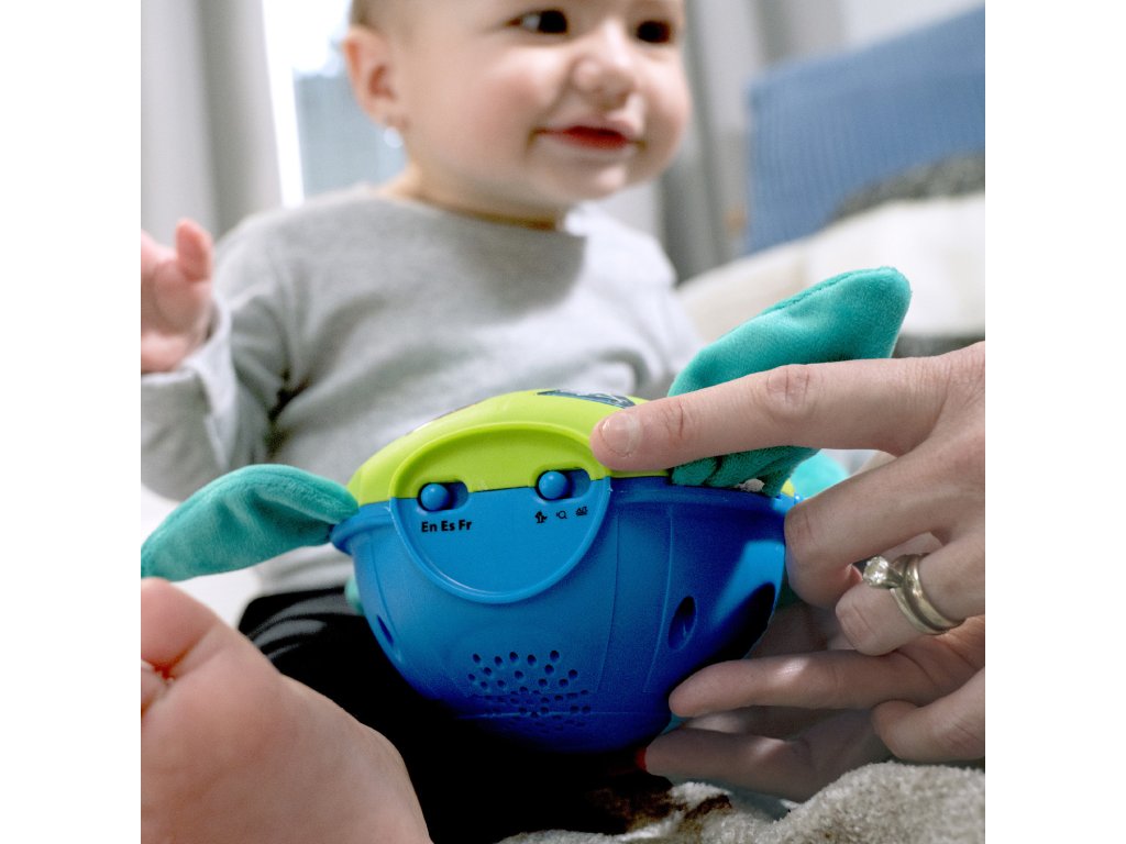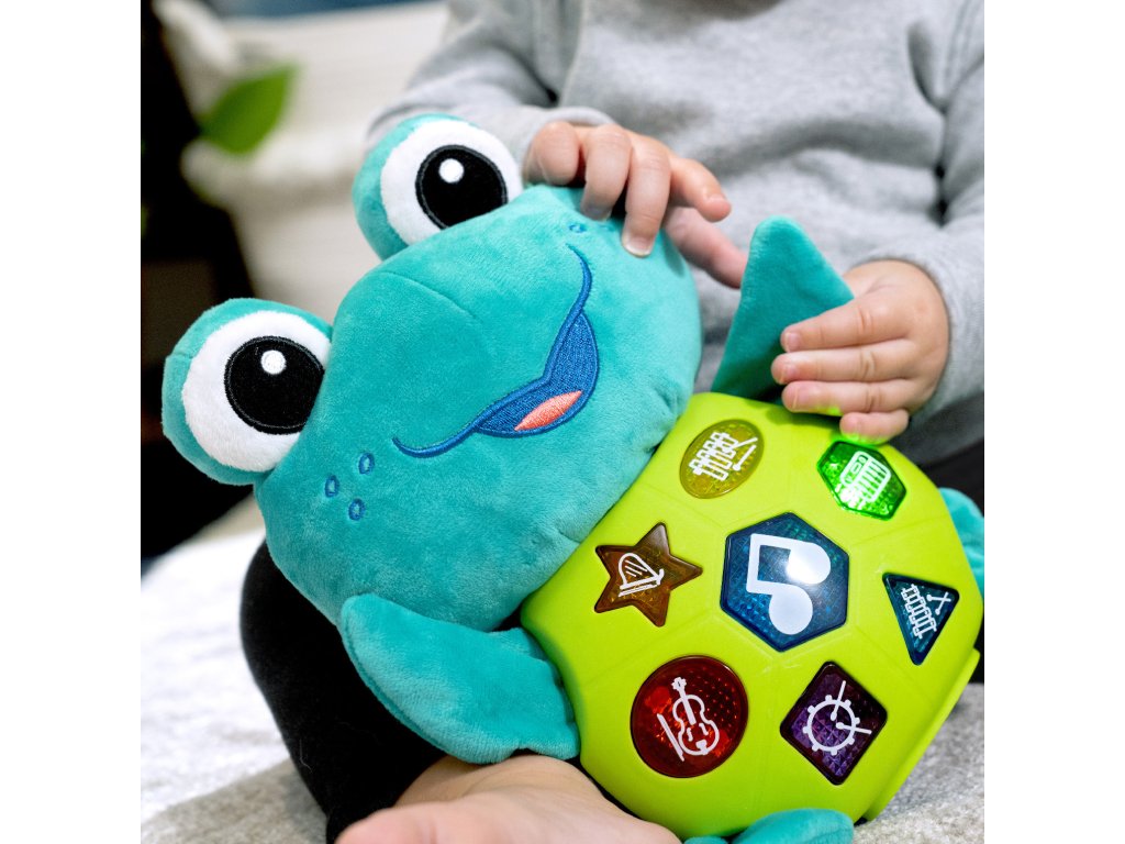 Hračka z radu Baby Einstein Ocean Explorers zobrazujúca roztomilú korytnačku je vyrobená z mäkkého plyšu, ktorý upokojuje a zábava dieťa prostredníctvom skúmanie farieb, tvarov a počúvania hudby. Vďaka viac ako 50 melódiám a zvukom, 3 jazykom, svetlám a 3 režimom hry si ju vaše dieťa zamiluje. Vlastnosti - multisenzorická hračka vyrobená z mäkkého plyšu - žiarivé farby - možnosť prepínania medzi 3 rôznymi režimami - režim „Skladateľ“ - prehráva 8 klasickým melódií, 6 zvukov nástrojov (marimba, bicie, elektrické piano, xylofón, harfa a basa) - režim „Objaviteľ“ – pomáha spoznávať farby, nástroje a tvary v troch jazykoch (angličtine, francúzštine a španielčine) - režim „Zvuky oceánu“ – umožňuje dieťaťu skúmať zvuky oceánu a vody - vhodné pre deti od 6 mesiacov Rozmery: 18.69 cm x 20.32 cmx 11.13 cm Vyžaduje 3 ks AA batérie (súčasťou balenia je len 1ks). UPOZORNENIE: Táto hračka vytvára záblesky, ktoré môžu vyvolať epilepsiu u citlivých jedincov. Adresa dodávateľa: KIDS2 EUROPE BV 5 Keizersgracht 287, 1016 ED Amsterdam, Netherlands; +31 20 241 0934Dodatočné parametre