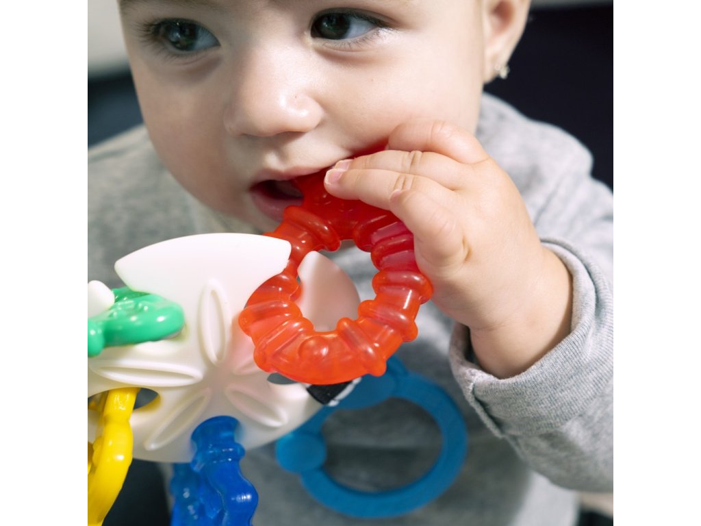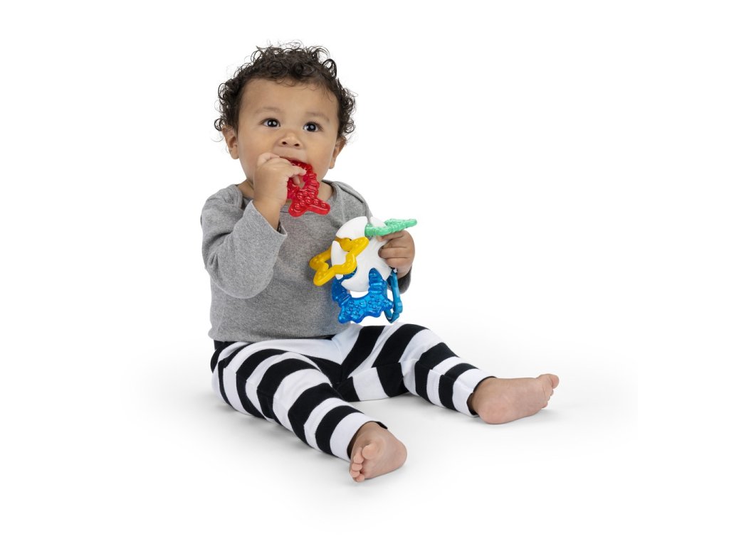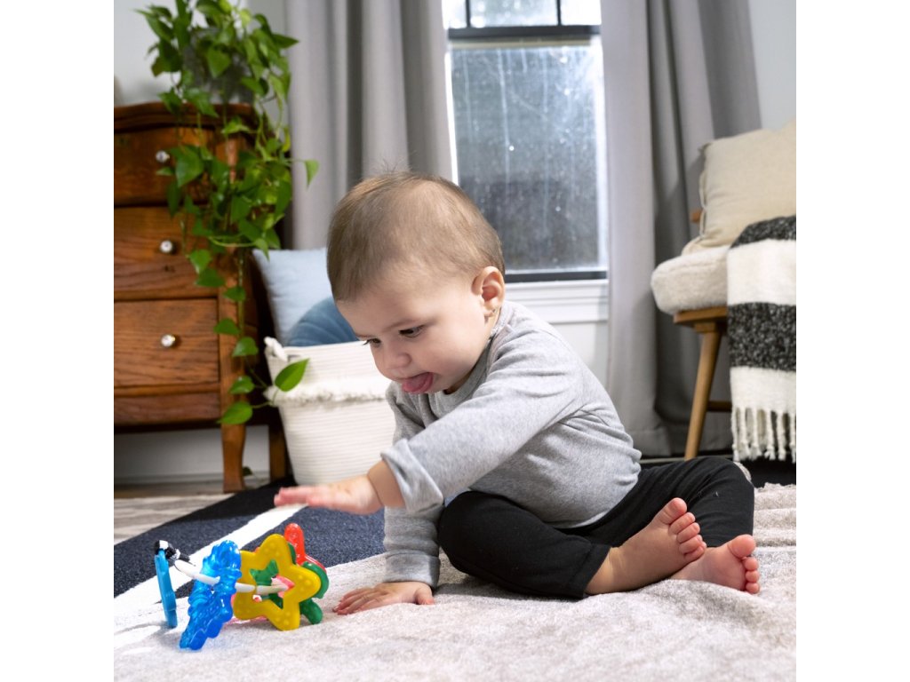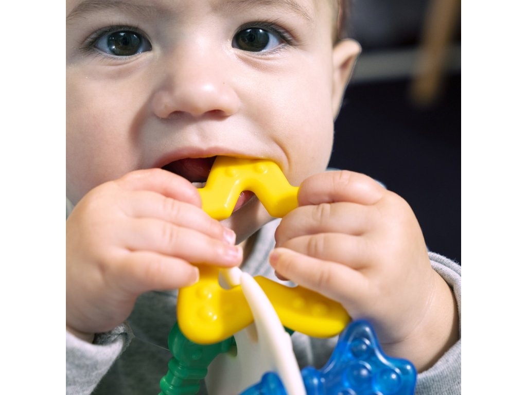Hryzačka Baby Einstein Ocean Explorers Sea of Sensory je súprava 5 menších hryzačiek s motívom oceánu bez BPA, ktoré pomáhajú upokojiť boľavé ďasná dieťaťa a zaujmú ho pestrými farbami a jedinečnými textúrami. Obsahuje 5 textúrovaných hryzačiek s morskými živočíchmi, z ktorých 2 sú naplnené vodou a chladia pre extra úľavu pri prerezávaní zúbkov. Veľké textúrované tvary sa dieťaťu ľahko uchopujú a rozmanité textúry a žiarivé farby stimulujú zmysly dieťaťa. C krúžok umožňuje pripevniť súpravu hryzačiek k nosičom, kočíkom a prebaľovacím taškám pre upokojenie na cestách. Vlastnosti - More zmyslov je súprava 5 hryzačiek bez obsahu BPA, ktoré majú textúry pomáhajúce upokojiť boľavé ďasná a zapojiť zmysly dieťaťa. - Veľkú, farebnú súpravu hryzačiek s motívom oceánu dieťa ľahko uchopí a zatrasie ňou. Dve z piatich hryzačiek sú naplnené vodou a dajú sa chladiť pre väčšiu úľavu. - C krúžok pomáha pripevniť hračku ku kočíkom, autosedačkám a nosičom pre upokojenie na cestách. - Jasné farby podporujú vizuálnu stimuláciu a asociáciu farieb. - Čistite vlhkou handričkou. Rozmery produktu: 23,11 x 16,51 x 6,35 cm Adresa dodávateľa: KIDS2 EUROPE BV 5 Keizersgracht 287, 1016 ED Amsterdam, Netherlands; +31 20 241 0934Dodatočné parametre