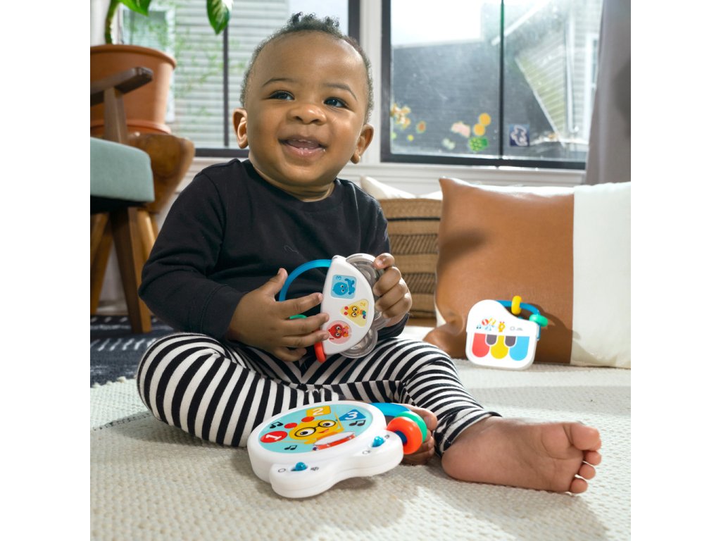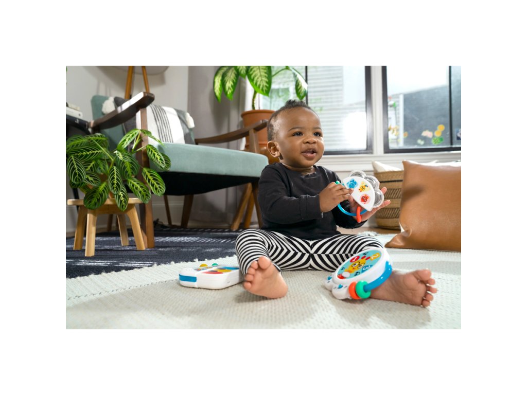 Bábätká si zamilujú hranie, poklepávanie a trasenie s hudobnými objavmi v súprave hudobných hračiek Baby Einstein Small Symphony, ktorá obsahuje 3 nástroje: Klavír - ponúka krátke klasické melódie a zvuky skutočného klavíra, vyžaduje 2 AA batérie, Bubon – ponúka krátke klasické melódie a zvuky skutočného bubna, vyžaduje 2 AA batérie, Tamburína - má jemné cinkanie, ktoré chráni ušká bábätka, nevyžaduje batérie Bubon a klavír umožňujú bábätku hrať dvoma spôsobmi. Melódia umožňuje prehrávanie klasických, znovu nahraných piesní. Režim voľnej hry pomáha bábätku vytvárať vlastné skladby so zvukmi skutočných nástrojov. Všetky nástroje obsahujú korálky na posúvanie, ktoré stimulujú rozvoj jemnej motoriky. Klavír a bubon majú ovládanie hlasitosti. Všetky nástroje sú ľahké na prenášanie a jednoducho sa používajú aj s malými rukami. Ľahko sa čistia. Rozmery: 30 cm x 5 cm x 23 cm Adresa dodávateľa: KIDS2 EUROPE BV 5 Keizersgracht 287, 1016 ED Amsterdam, Netherlands; +31 20 241 0934Dodatočné parametre