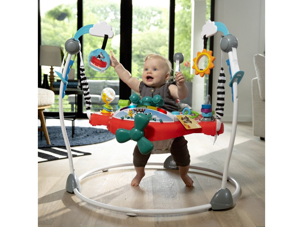 Pripravte sa na zábavu s aktívnym centrom 2v1 Ocean Explorers Airplane Adventure. Vďaka tomuto skákadlu sa hudba stane nekonečným dobrodružstvom a bude súčasťou každého hrania. Skákadlo 2v1 umožní dieťatku pilotovať lietadlo a prežiť viaczmyslové dobrodružstvo s viac ako 20 melódiami, zvukmi, svetlami a nastaviteľným sedadlom so 4 výškovými polohami, ktoré sa otáča o 360 stupňov, a ďalšími funkciami. Dieťatko pri každom odraze aktivuje pesničky a svetlá, aby sa dostalo do zmyslovo stimulujúceho vzletu. Odnímateľný elektronický hrací pultík obsahuje 10 interaktívnych komponentov vrátane 7 tlačidiel, plynu a volantu, ktoré pomáhajú dieťaťu pilotovať. Dieťa sa môže učiť tvary, farby a čísla v 4 jazykoch - angličtine, španielčine, francúzštine a nemčine. 7 multisenzorických hračiek a aktivít zapája vývojové zručnosti, ako sú príčina a následok a zručnosť. Obľúbené postavičky Baby Einstein Ocean Explorers, ako Cal, Zen a Neptún, slúžia dieťaťu ako kopiloti. Vlastnosti: - skákadlo Baby Einstein Ocean Explorers Airplane Adventure s motívom lietadla, odmeňuje skoky dieťaťa hudbou a svetlom a rozvíja tak jeho hrubú motoriku - centrum aktivít s hudobnou tematikou zaujme a zabaví každé dieťatko - obsahuje 7 rôznych hračiek - rozvíja hrubú a jemnú motoriku dieťatka - možnosť nastaviť na štyri rôzne výšky, čím skákadlo rastie spolu s dieťaťom - hudba je všade okolo vďaka 360° otočnému sedadlu, kde sa dieťatko môže otáčať a odrážať sa - odnímateľný hrací pultík s rôznymi hudobnými aktivitami a svetelnými efektami a možnosťou nastavenia hlasitosti - odnímateľný hrací pultík môže byť použitý dvomi spôsobmi – v rámci skákadla alebo samostatne na podlahe - viac ako 20 melódií a zvukov sa aktivuje skákaním, stláčaním, otáčaním - 4 jazyky – angličtina, francúzština, španielčina, nemčina - rozvíja kreativitu a objavovanie príčin a následkov - ľahká údržba – utrite vlhkou handričkou - vhodné pre deti od 6 mesiacov do 12kg alebo dosiahnutí výšky 76 cm - vyžaduje 3 AA (LR6) batérie, ktoré nie sú súčasťou balenia Rozmery produktu: 86.31 cm x 93,88 cm x 93,88 cm Adresa dodávateľa: KIDS2 EUROPE BV 5 Keizersgracht 287, 1016 ED Amsterdam, Netherlands; +31 20 241 0934Dodatočné parametre