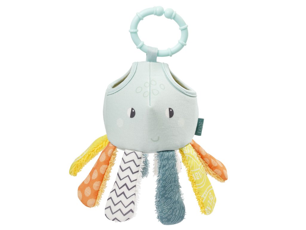 S chobotnicou bude každé kúpanie zábava. Roztomilého plyšáka stačí ponoriť do vody a zase vytiahnuť za krúžok. Voda potom pretečie otvormi na dne chobotnice a urobí malý vodopád. Chobotnica je navyše vybavená šuštiacim papierom v chápadlách, ktorý podporuje rozvoj detských zmyslov a motoriky.