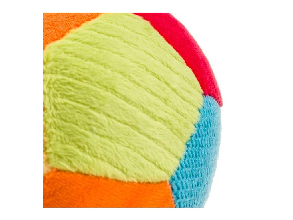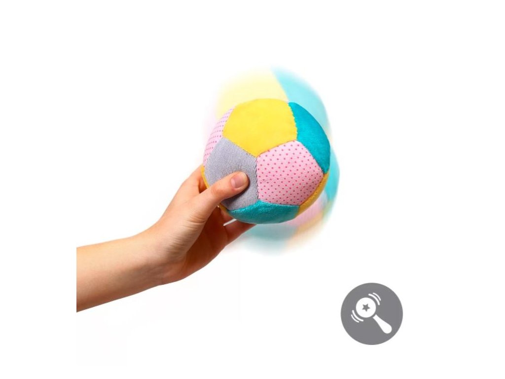 Pestré kontrastné farby usporiadané do geometrických päťuholníkov pomáhajú zamerať zrak a rozlišovať farby. Jemný zvuk zvončeka vo vnútri hračky podporuje záujem o hru. Mäkký materiál uľahčuje uchopenie a prenášanie z ruky do ruky, čím prirodzene rozvíja motoriku.