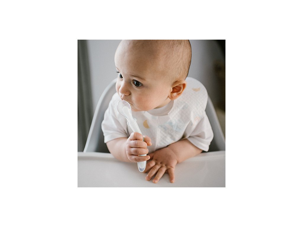 Flexibilná lyžička vyrobená z mäkkého silikónu je ideálna, ak sa dieťatko učí jesť samo. Vďaka svojej pružnosti sa lyžička prispôsobuje detskému držaniu a jedeniu. Je úplne bezpečná pre citlivé detské ďasná a zúbky. Výrobok je možné umývať ručne alebo v umývačke riadu. Samostatné stravovanie - Lyžička povzbudzuje dieťatko, aby sa naučilo jesť samo. Rozvíja tak svoje manuálne zručnosti a podporuje pocit samostatnosti. Mäkký silikón - Je vyrobený z mäkkého silikónu. Lyžička je šetrná k ďasnám a zubom dieťatka a jej používanie je bezpečné. Elastický materiál - Vďaka elastickému materiálu si lyžička zapamätá tvar. Prispôsobí sa malým rúčkam dieťatka pre správne uchopenie. Univerzálne držanie - Lyžička je určená pre pravákov aj ľavákov. Moderný dizajn - Atraktívny a moderný dizajn zaujme bábätká aj rodičov. Jednoduché čistenie - Lyžička sa ľahko čistí. Pokojne ju môžete umývať ručne alebo v umývačke riadu. Technické vlastnosti: Materiál: silikón Odporúčaný vek: 6 m+ Veľkosť produktu: 2,5 x 15 cm Odstráňte všetky bezpečnostné prvky, ktoré môžu byť nebezpečné pre dieťa. Výrobok je potrebné skontrolovať pred každým použitím. Ak sa objavia prvé známky poškodenia alebo opotrebenia, vyhoďte ho. Vždy používajte pod dohľadom dospelej osoby. Výrobok nie je hračka. Odporúčame uchovať obal na informačné účely. Obal uchovávajte na mieste neprístupnom deťom. Pred prvým použitím opláchnite výrobok horúcou vodou (nevarte!) a osušte. Ak čistíte výrobok v umývačke riadu, vyberte ho ihneď po skončení programu a osušte. Ponechanie výrobku v umývačke riadu po umytí môže spôsobiť deformácie. Adresa dodávateľa: Babyono sp. z o.o., Kowalewicka 13, 60-002 Poznań, Poland. +48 61 83 90 520, info@babyono.pl, www.babyono.com