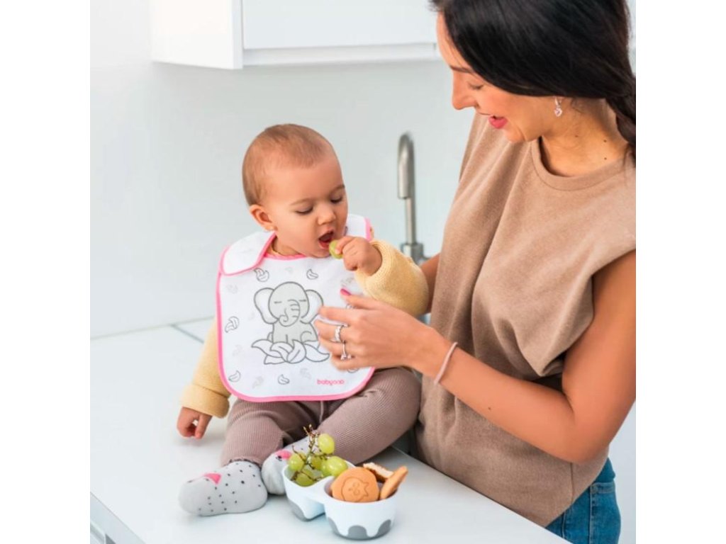 Podbradník s krásnym motívom je vyrobený z vysoko kvalitnej froté bavlny. Vnútorná vrstva je z nepremokavého materiálu, ktorý dodatočne chráni oblečenie dieťatka pred znečistením. Pohodlné a praktické zapínanie na suchý zips zvyšuje pocit pohodlia pre dieťatko.