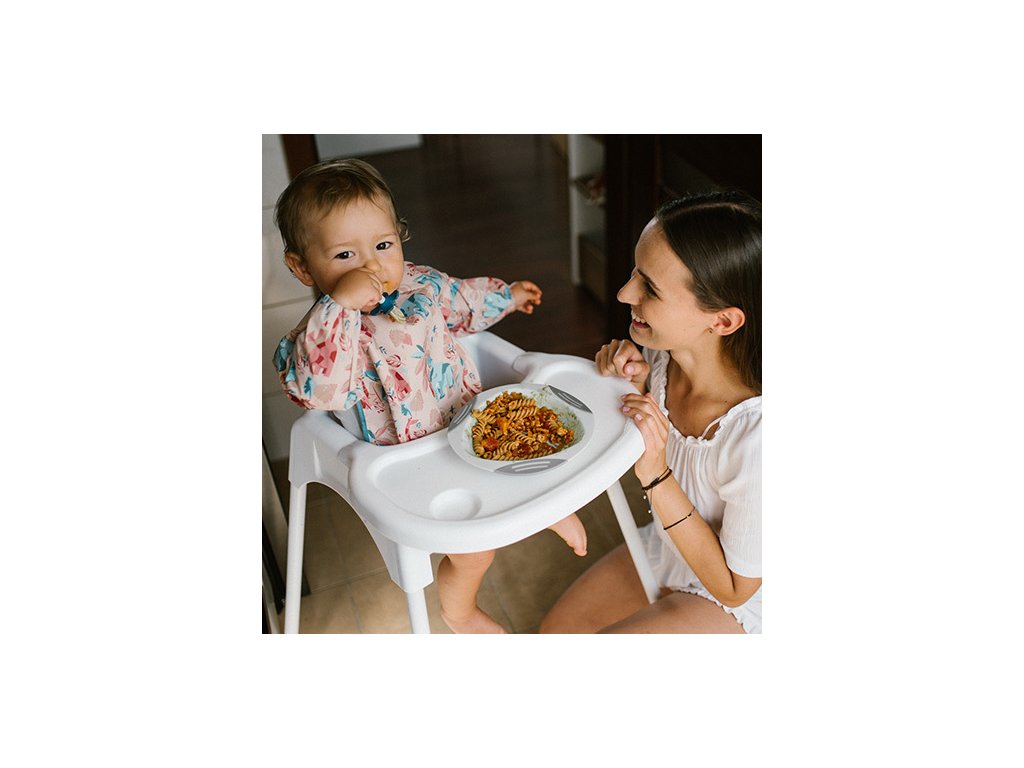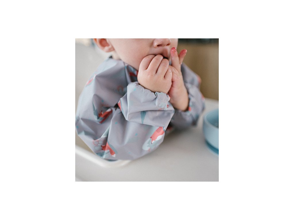 Šikovný pomocník, ktorý spoľahlivo ochráni oblečenie vášho bábätka. Počas jedenia chráni nielen prednú časť oblečenia, ale aj rukávy, ktoré sa často zašpinia. Vďaka pružným gumičkám dobre priľne k detským rúčkam a poskytne maximálnu ochranu.