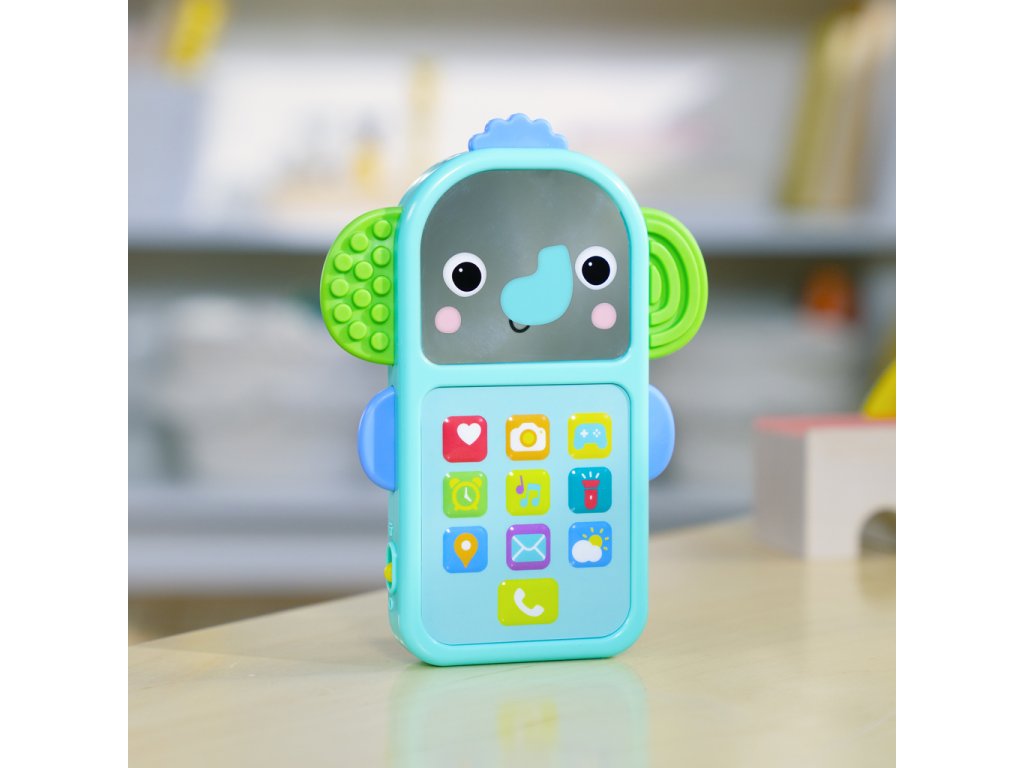 Tento rozkošný „sloníkový smartfón“ podporuje rozvoj jemnej motoriky, zmyslového vnímania aj predstavivosti a je ideálny na hranie doma či na cestách.