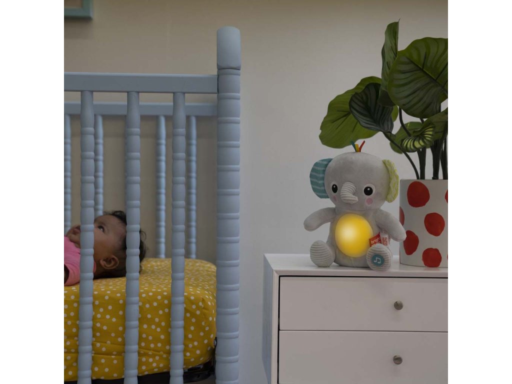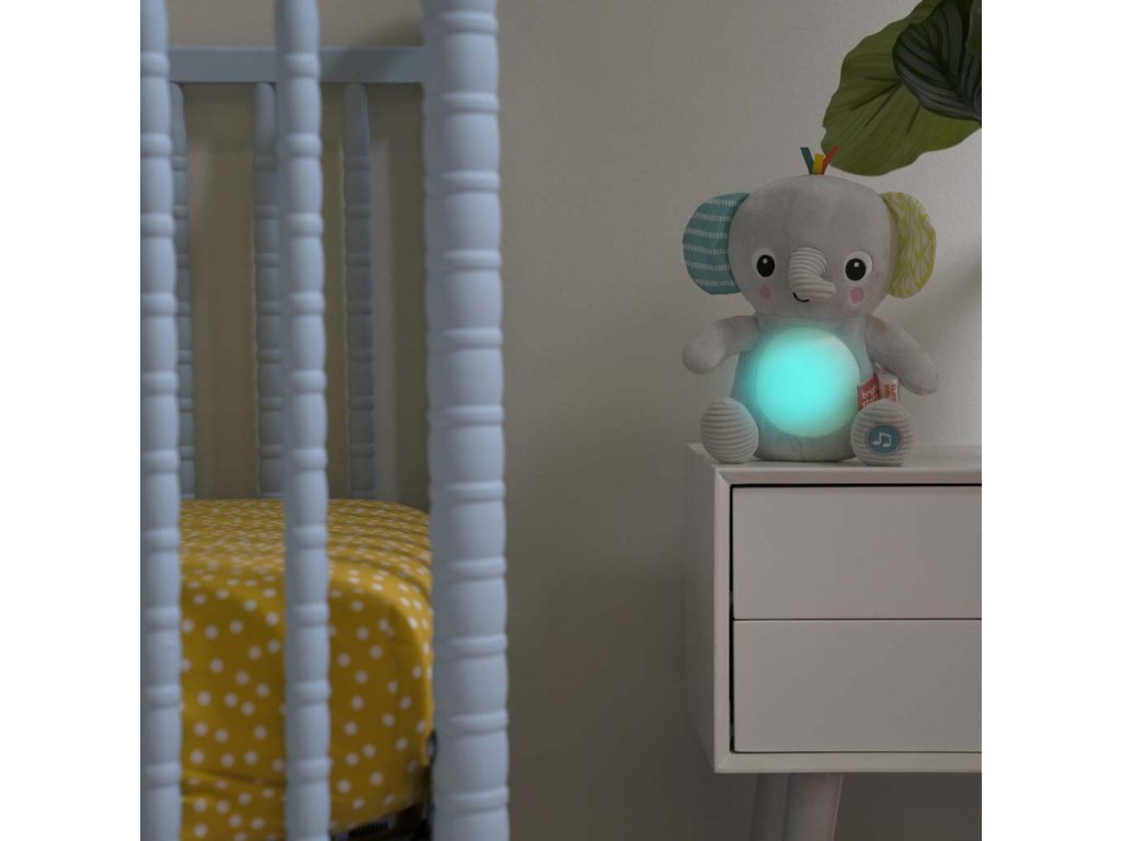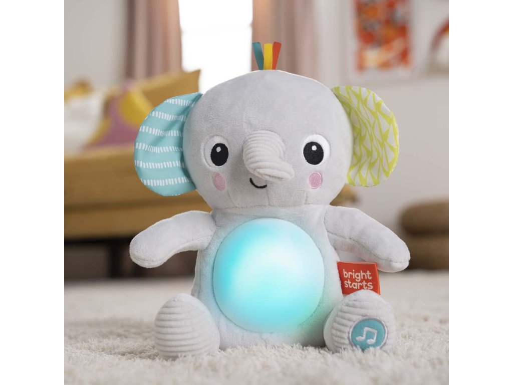 BRIGHT STARTS Hračka plyšová hudobná svietiaca Hug-a-bye Baby™ sloník 0m+