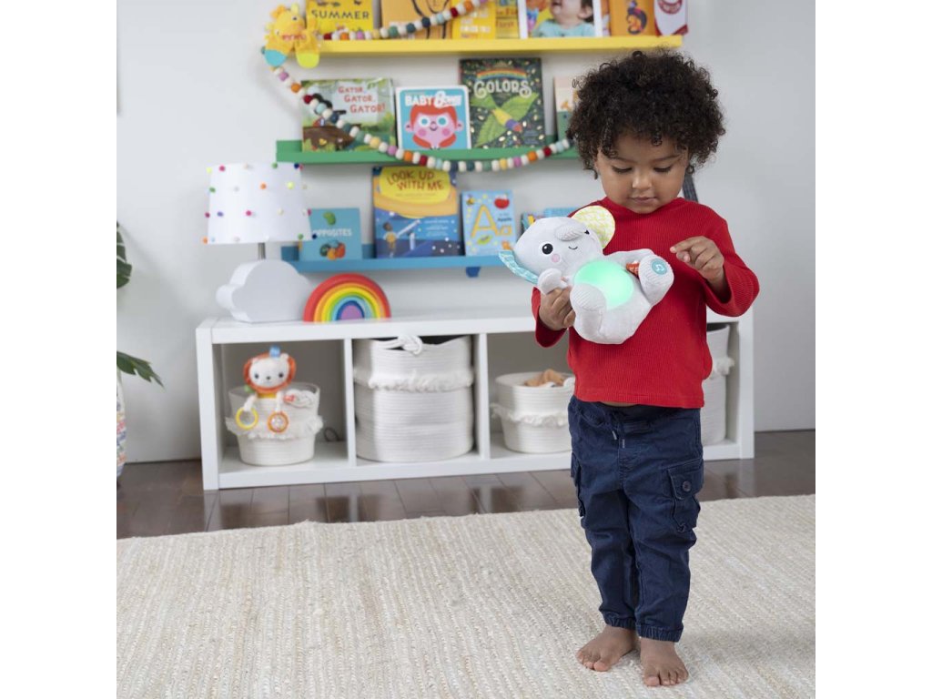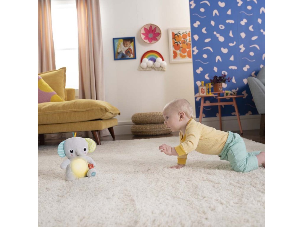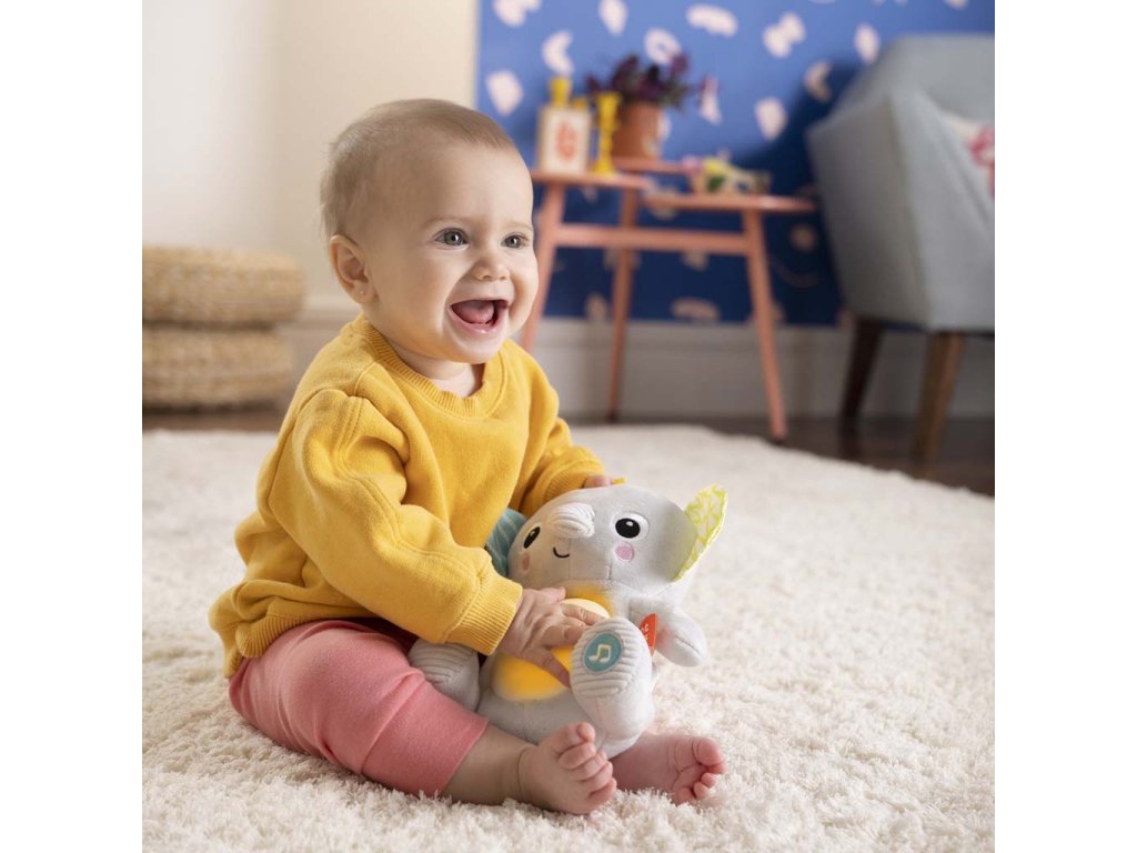 Tento mäkký plyšový sloník sa stane tým najlepším kamarátom vášho dieťatka. Mäkké plyšové zvieratko hrá viac ako 20 minút upokojujúce melódie a rozsvieti sa po jemnom stlačení nožičky. Prepínajte medzi dvoma režimami prehrávania buď nepretržitej hudby, alebo krátkych pesničiek. Sledujte, ako sa sloníkovo bruško mihá v rytme melódií! Vaše dieťa si zamiluje upokojujúcu žiaru bruška svojho nového kamaráta. Preskúmajte množstvo textúr, hrkálok a stužiek, ktoré podporujú rozvoj jemnej motoriky. Táto aktívna hračka bude naozajstným maznáčikom, ktorý Vaše dieťatko upokojí v akejkoľvek situácií. Vlastnosti: - prítulný mäkký maznáčik na objímanie - stlačením nožičky aktivujete jemné melódie a svetielka v 2 režimoch - dva režimy: nepretržité prehrávanie hudby alebo krátke melódie - svetelné efekty na brušku sloníka - skúmanie hmatom - rôzne textílie a stužky - ľahká údržba - vyžadujú sa batérie: 3× AAA/LR03 (nie sú súčasťou balenia) Rozmery produktu: 20.96 cm x 11.43 cm x 20.96 cm Starostlivosť a údržba: Utrite vlhkou handričkou a jemným mydlom. Vysušte na vzduchu. Neponárajte do vody. UPOZORNENIE: Táto hračka vytvára záblesky, ktoré môžu vyvolať epilepsiu u citlivých jedincov. Adresa dodávateľa: KIDS2 EUROPE BV 5 Keizersgracht 287, 1016 ED Amsterdam, Netherlands; +31 20 241 0934Dodatočné parametre