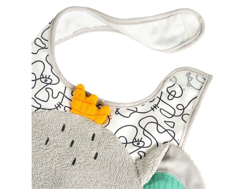 Podbradník na slintanie, handričku na vypľutie a ochrana proti poliatiu v jednom: Sivý podbradník z froté v tvare slona ponúka optimálnu ochranu pri jedle. Zapínanie na suchý zips uľahčuje pripevnenie. Materiál odoláva častému praniu a každodennému používaniu. Dokonalý darček pre bábätko.