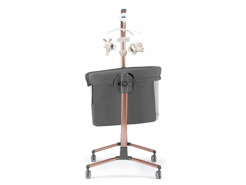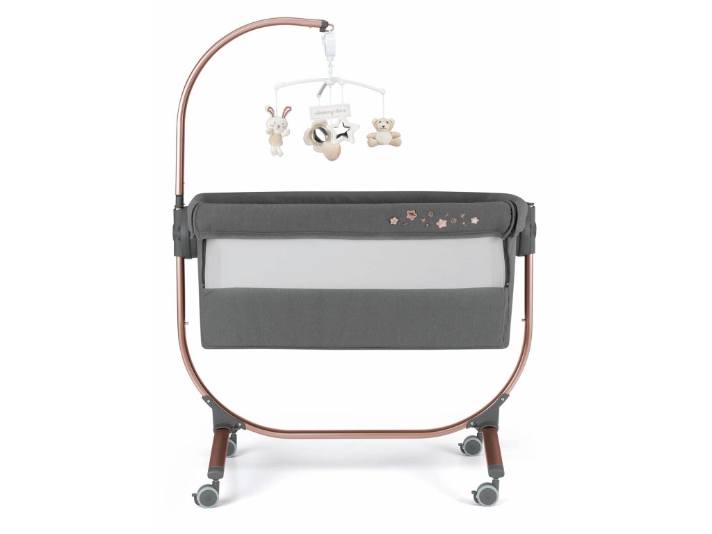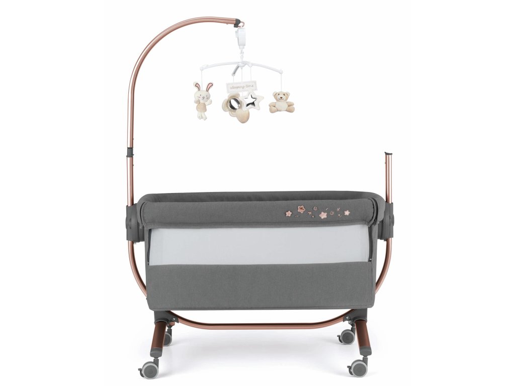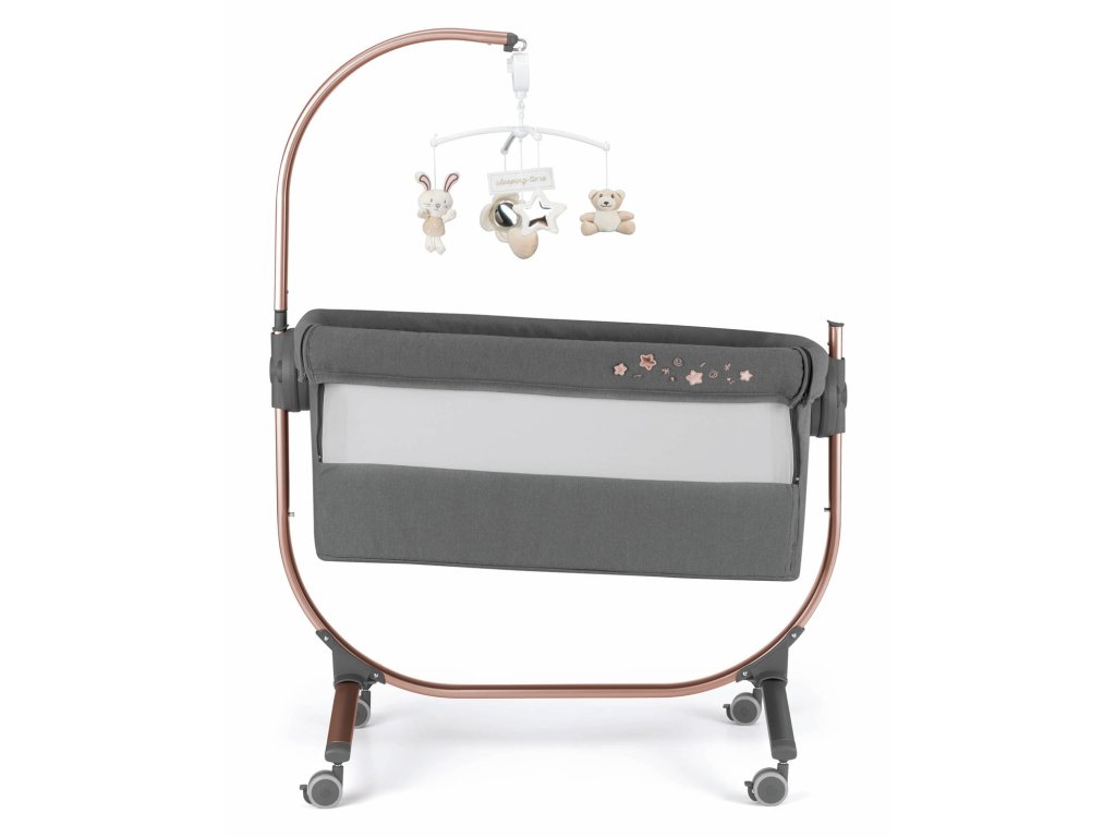 Vďaka odnímateľnej bočnici a možnosti posunúť celé lôžko na ráme do strany (až 16cm) ju možno ľahko umiestniť tesne vedľa vašej postele. Pre jednoduchú manipuláciu po byte je vybavená kolieskami. Cullami postieľku možno nastaviť do rôznych výšok i polohovať. Je ukotvená v kovovom ráme, postieľku lze zaistiť napevno alebo používať ako kolísku.