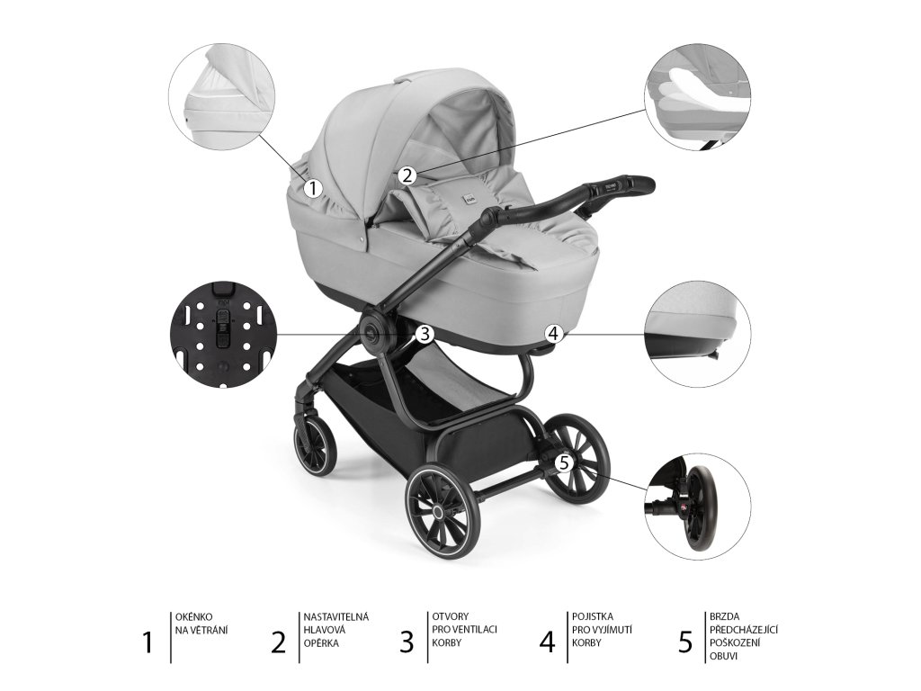 Ich veľkou výhodou je, že sa nedajú prepichnúť. Takže sa na ne môžete stopercentne spoľahnúť, keď ste na cestách. Výškovo nastaviteľná rukoväť s ručným prešívaním z ekokože dopĺňa tento štýlový a praktický kočík. Počas jázd alebo výletov oceníte priestranný nákupný košík, do ktorého môžete umiestniť potraviny alebo všetky potrebné veci. Podvozok kočíka sa navyše ľahko skladá. V zloženom stave je veľmi kompaktný, samostatne stojí a vďaka hmotnosti len 7 kg sa s ním ľahko manipuluje.