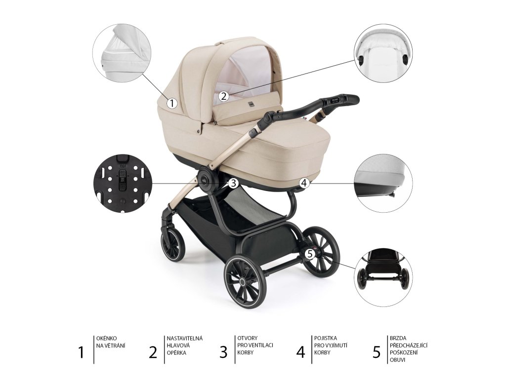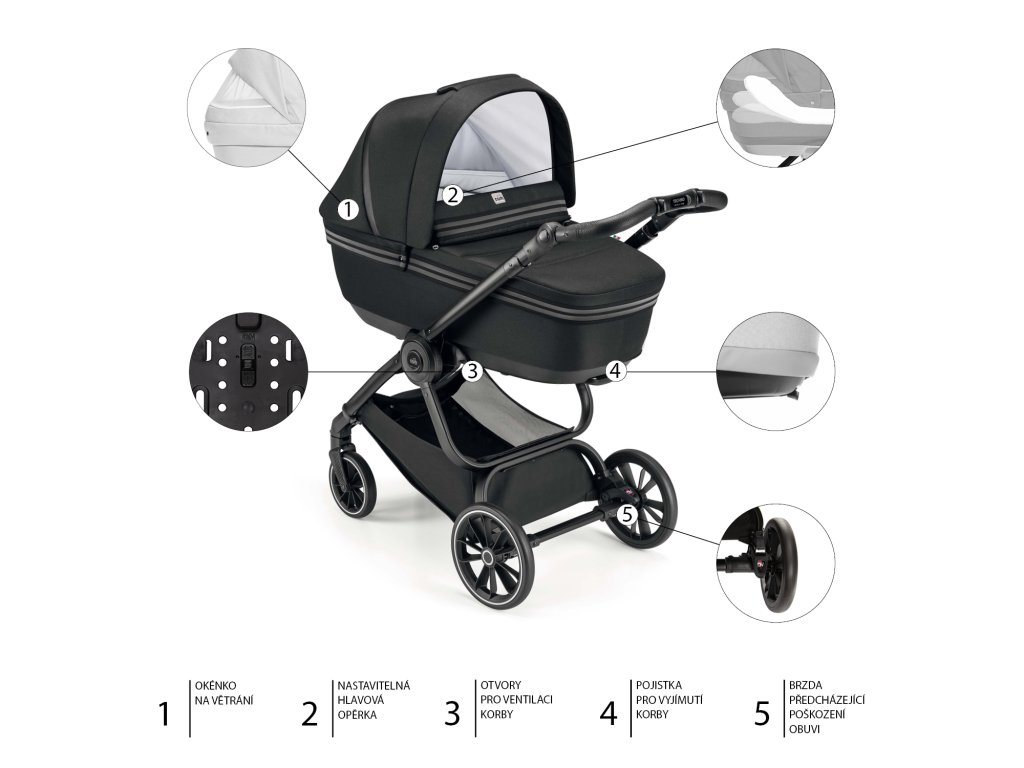 Praktická súprava obsahuje podvozok, hlboké sedadlo a športovú karosériu. Všetko v harmonickom, elegantnom dizajne. Vďaka tejto súprave môžete svoj novorodenecký kočík ľahko premeniť na športový kočík do mesta.