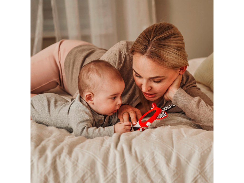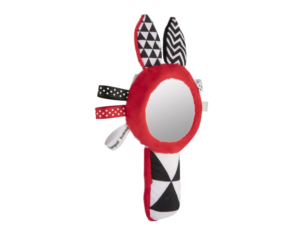 CANPOL BABIES Činka kontrastná pískacia so zrkadielkom Sensory