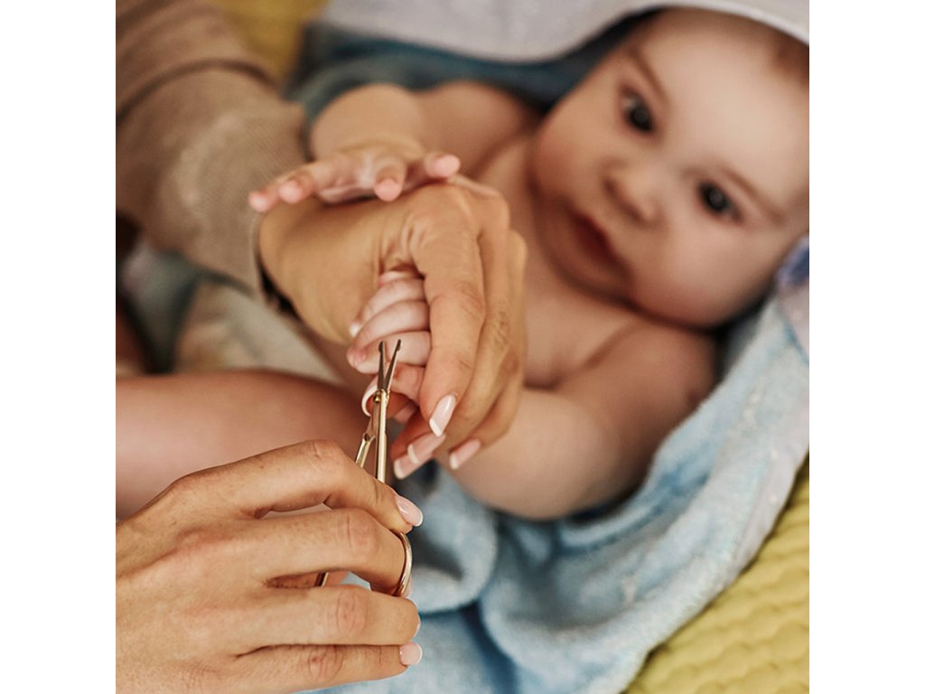 Praktické nožnice pre bezpečné strihanie detských nechtov. Strihanie detských nechtov sa odporúča vykonávať pri spaní dieťaťa.