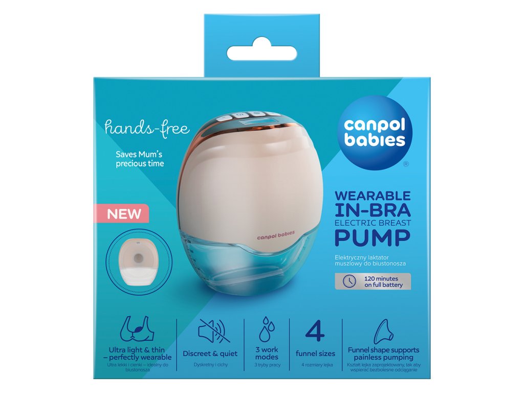 Elektrická odsávačka materského mlieka Canpol babies Hands-Free je ideálnym riešením pre moderné a aktívne mamičky. Umožňuje účinné a pohodlné odsávanie mlieka priamo v podprsenke, bez hadičiek a obmedzovania pohybu. Je vhodná na stimuláciu laktácie po pôrode, ale aj pre mamičky, ktoré sa vracajú do práce alebo kombinujú dojčenie s kŕmením z fľaše.
