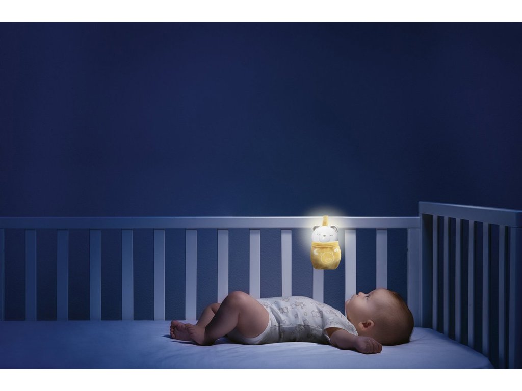 CHICCO Hrkálka a nočné svetielko Macko 2v1 0m+