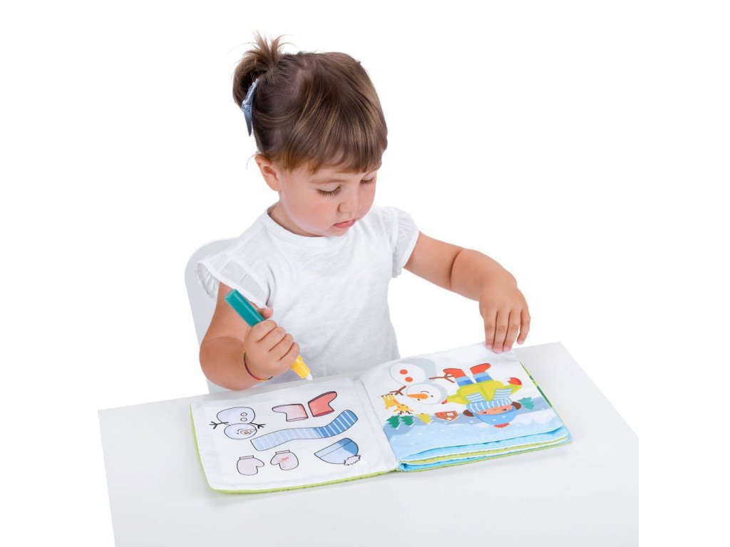 Textilné vodné omaľovánky s magickou značkou sú ideálne na prvé pokusy o vyfarbovanie. - Stačí naplniť nádobku fixky vodou, akonáhle sa hrot fixky dotkne knižky, farby v kresbách sa magicky objavia - Po zaschnutí vody farba zmizne a zošit je pripravený na ďalšie vyfarbovanie - Knižka je o ročných obdobiach a ich typických charakteristických znakoch, na zábavné učenie a logické asociácie - Učí farby a prvky jednotlivých ročných období - Súčasťou balenia je fixka plniteľná vodou - Odporúčaný vek: 2r-4r Rozmery: 15 x 3 x 15 cm POZOR! · Pred použitím výrobku odstráňte a zlikvidujte všetky plastové vrecká a iné obaly (napr. spojovacie prvky a upevňovacie spony atď.) a držte ich mimo dosah detí. Nebezpečenstvo udusenia. · Pravidelne kontrolujte, či výrobok nevykazuje známky opotrebovania a poškodenia a zabezpečiť že je správne zostavený. Mal by ktorákoľvek časť je poškodená, nepoužívajte ju a uchovávajte ju mimo dosahu detí. · Vždy používajte pod neustálym dohľadom dospelého. Kontakt dodávateľa: ARTSANA SPA Via S. Catelli 1 - 22070, Grandate (CO), Italy, www.chicco.com, +39 800 188 1259Dodatočné parametre