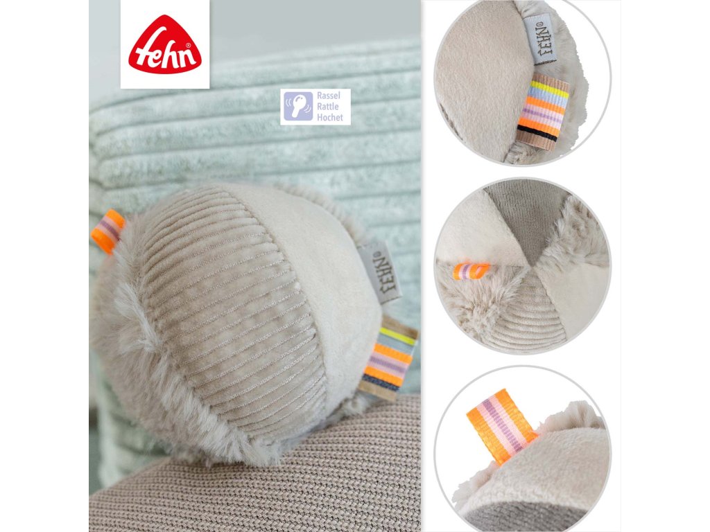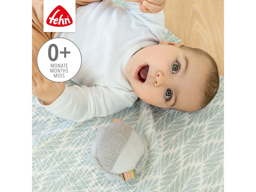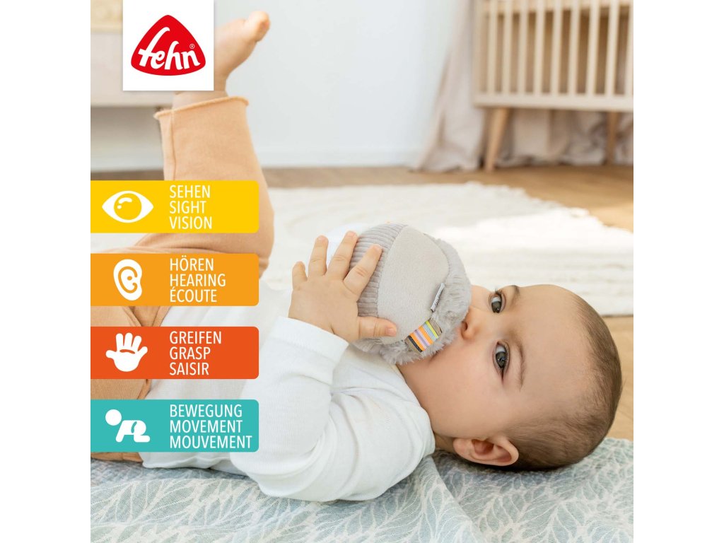 Kotúľanie, trasenie, posúvanie – s hebkou loptičkou z kolekcie Lazy, Crazy & Pink od Fehn sa bábätká hravou formou učia objavovať svet. Malá mäkká loptička sa rozkotúľa a chrastítko vo vnútri veselým zvukom upúta pozornosť dieťaťa, ktoré sleduje pohyb s veľkým záujmom. Hebká loptička pomáha rozvíjať motorické zručnosti, koordináciu oko–ruka i obratnosť, pretože motivuje k lezaniu, hádzaniu a chytaniu.