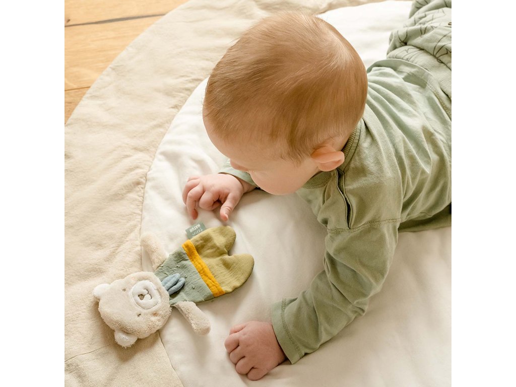 Malá hračka v dizajne obľúbeného zvieratka z kolekcie fehnNATUR hravo stimuluje detské zmysly a podporuje rozvoj ich motoriky. Hračka vydáva praskacie zvuky, ktoré deti priamo milujú a vždy ich dokážu zabaviť a zaujať ich pozornosť.