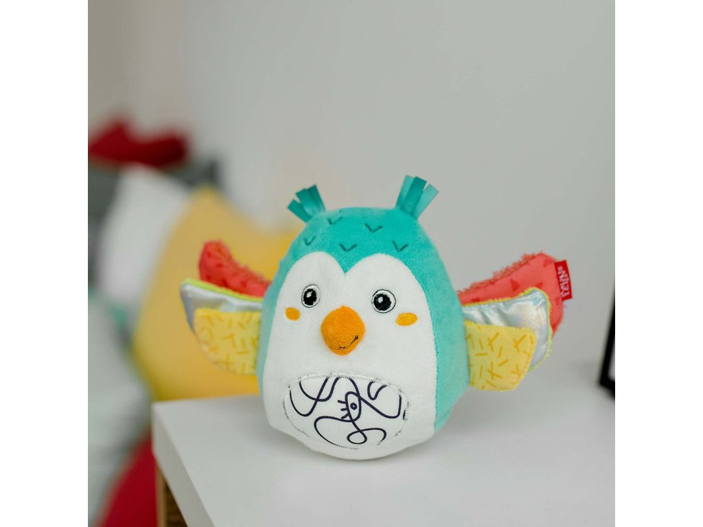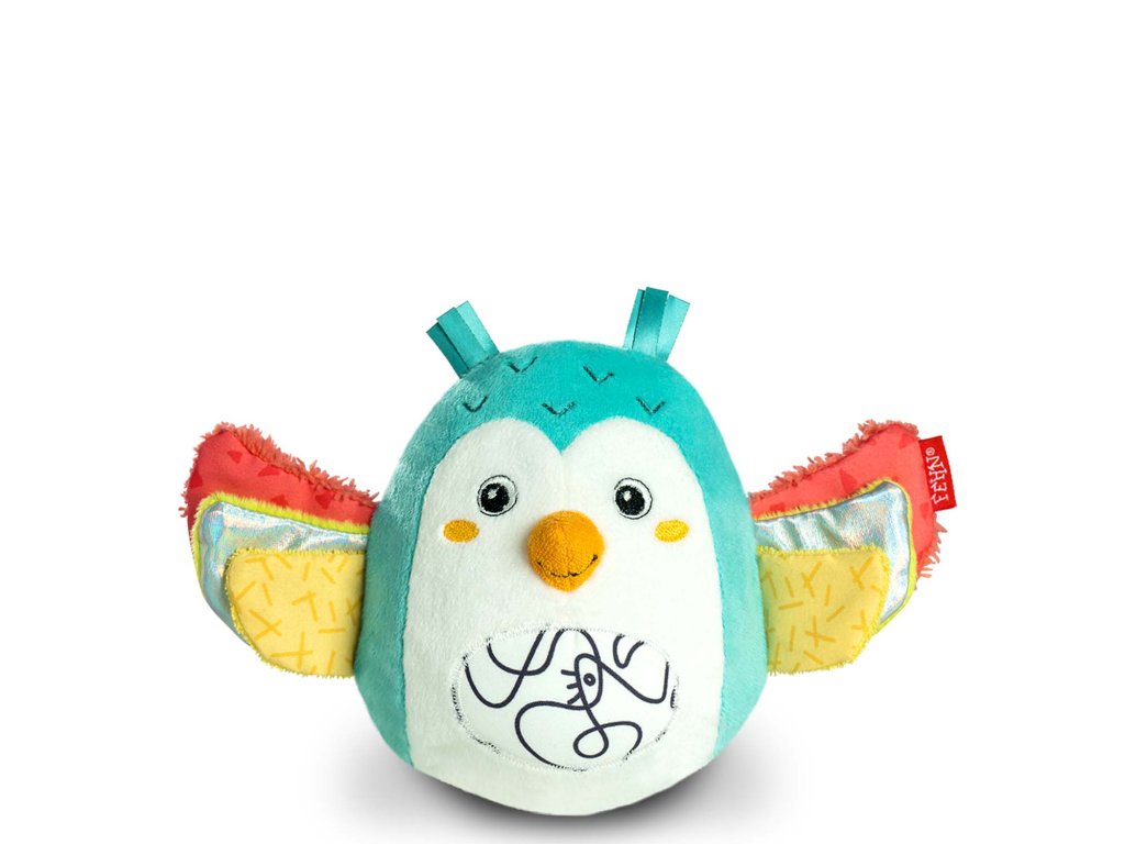 Plyšová hrkálka s množstvom aktivity prvkov ako je zvonček a praskací papier. Hračka na uchopenie hravo podporuje sluch dieťaťa, zmysel pre zrak, hmat, zdravé uchopenie a logické myslenie – ideálny ako darček pre chlapcov a dievčatá.