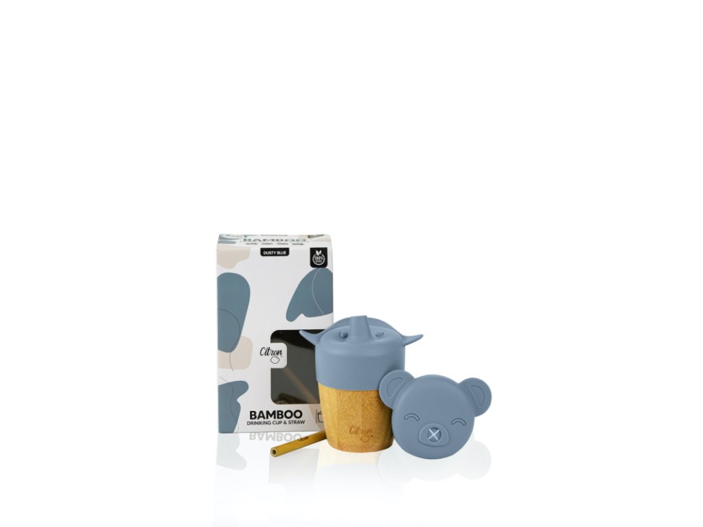 Citron Bambusový hrnček s náustkom a slamkou - Dusty Blue