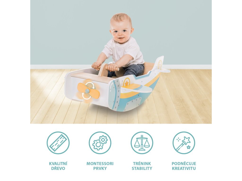 riadidlá vpredu. Široké sedadlo má operadlo, ak sa dieťa chce len jemne hojdať