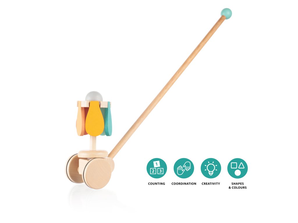 Drevený kvetinový posúvač na motiváciu k chôdzi. Vhodné pre deti od 16 mesiacov.