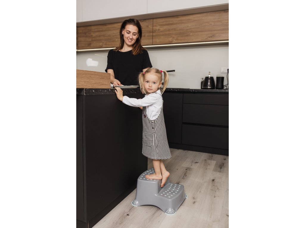 Dvojstupienok pre malé deti k umývadlu a k WC s protišmykovou úpravou pomáha bezpečne si osvojovať základné hygienické návyky.