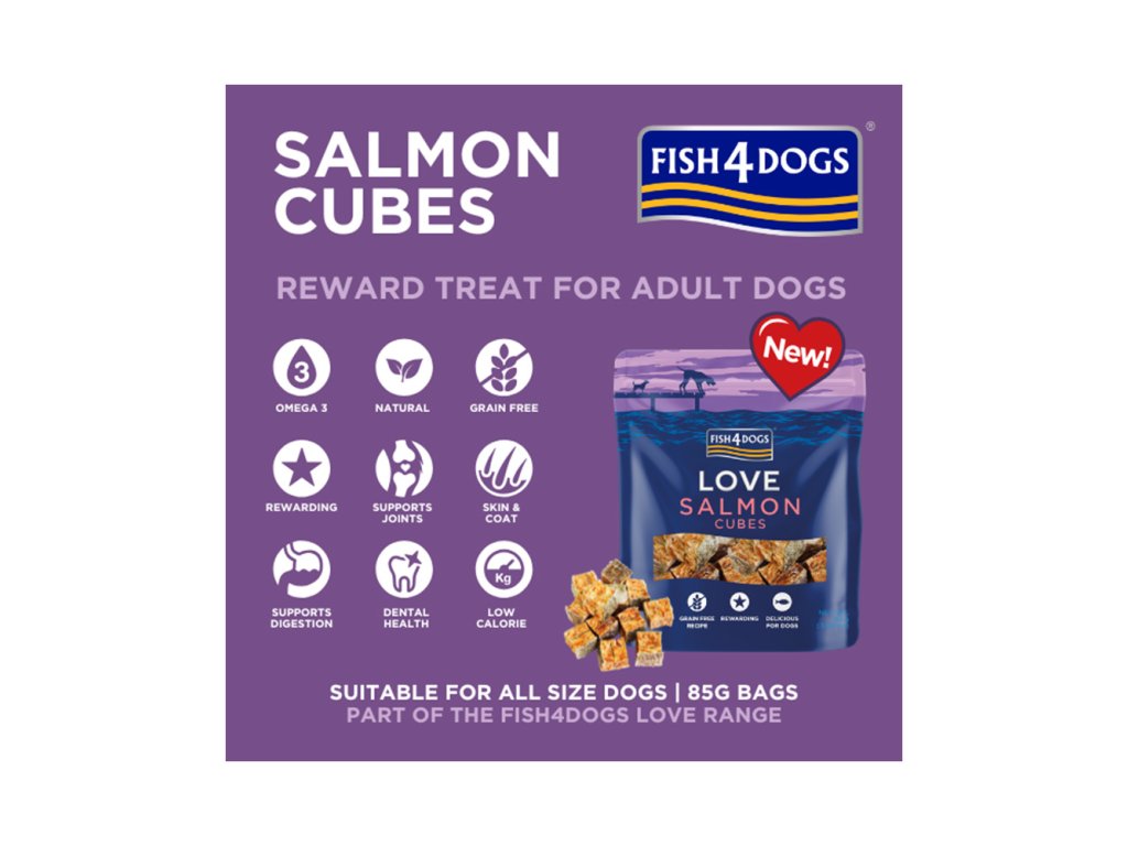 FISH4DOGS Maškrty pre psov LOVE s lososom - kocky 85 g