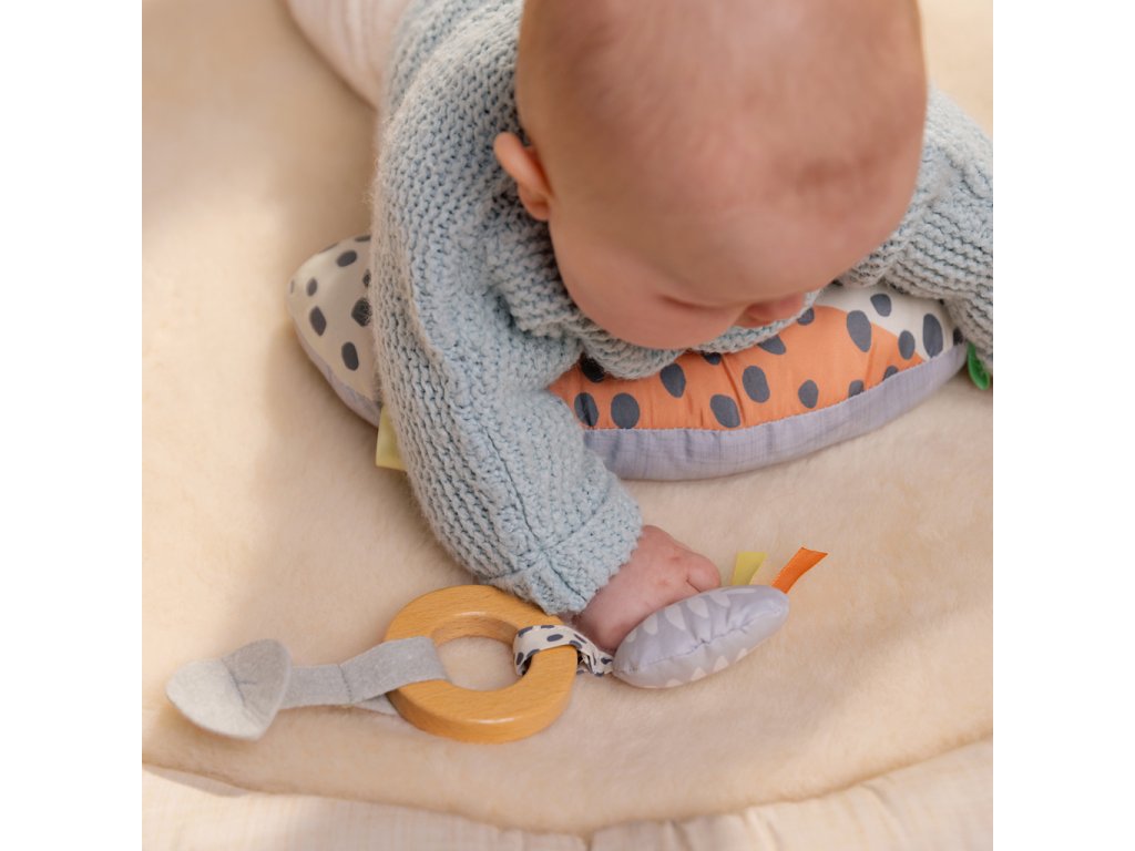 Poskytnite bábätku ešte viac pohodlia v jeho hracom svete s dekou na hranie Every Season z pravej austrálskej ovčej vlny. Deka ponúka jedinečné útulné prostredie počas prvých mesiacov dieťatka, a vďaka ovčej vlne dokonalo chráni telesnú teplotu bábätka. Mäkká hustá vlna je úžasným hmatovým stimulom, čím podporí senzorické rozvíjanie zmyslov dieťatka. Deka je ideálna pre hry na chrbátiku, ale aj pre čas strávený na brušku. Ponúka tri spôsoby hry – ležmo, na brušku a v sede. Drevená odnímateľná hrazdička obsahuje 5 rôznych hračiek, ktoré ponúkajú dieťatku plno zábavy. Dokonca si ich ľahko môžu zobrať kamkoľvek so sebou. Dve plyšové hračky macko a sloník, drevený krúžok so senzorickou stužkou a dve zrkadlové hračky podporujúce seba-objavovanie dieťatka. Obojstranný prémiový moderný vzor dopĺňa akúkoľvek domácnosť. Hračky a materiály použité pri výrobe deky boli vybrané špeciálne pre prvý rok života dieťatka, aby mu čo najviac pomohli so zrakovým a hmatovým rozvojom. Vlastnosti - Ponúka príjemné pohodlie pre deti od narodenia. Vyrobené z pravej austrálskej ovčej vlny, ktorá chráni telesnú teplotu. - Ponúka tri spôsoby hry - Deka obsahuje drevenú hrazdičku s 5 hračkami. - Hračky a materiály použité pri výrobe deky boli vybrané špeciálne pre prvý rok života dieťatka, aby mu čo najviac pomohli so zrakovým a hmatovým rozvojom. - Hrazdičku aj hračky viete jednoducho odňať a vziať so sebou kamkoľvek. - Skvelý tip na darček. - Vyžaduje 2 AA batérie, ktoré nie sú súčasťou balenia. - Zloženie materiálu 60% tkanina, 30% drevo, 10% plast - Veková skupina 0 - 12 mesiacov - Rozmery: 52 cm (V) x 94 cm (Š) x 94 cm (D). Dôležité: Pred odovzdaním výrobku dieťaťu odstráňte všetok obalový materiál a upevňovacie prvky. Obal uschovajte na budúce použitie. Obsahuje dôležité informácie. Len na použitie v rámci jednej rodiny. Adresa dodávateľa: KIDS2 EUROPE BV 5 Keizersgracht 287, 1016 ED Amsterdam, Netherlands; +31 20 241 0934.Dodatočné parametre