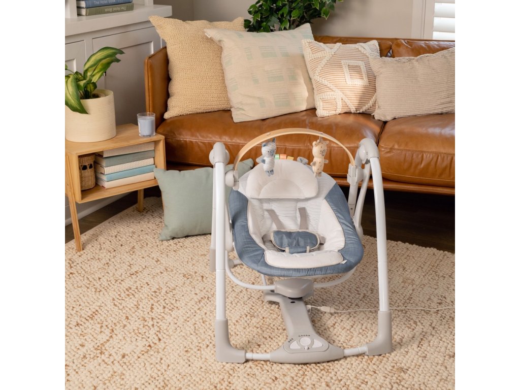 INGENUITY Hojdačka konvertibilná s melódiou Swing 'n Go Chambray 0m+ do 9kg