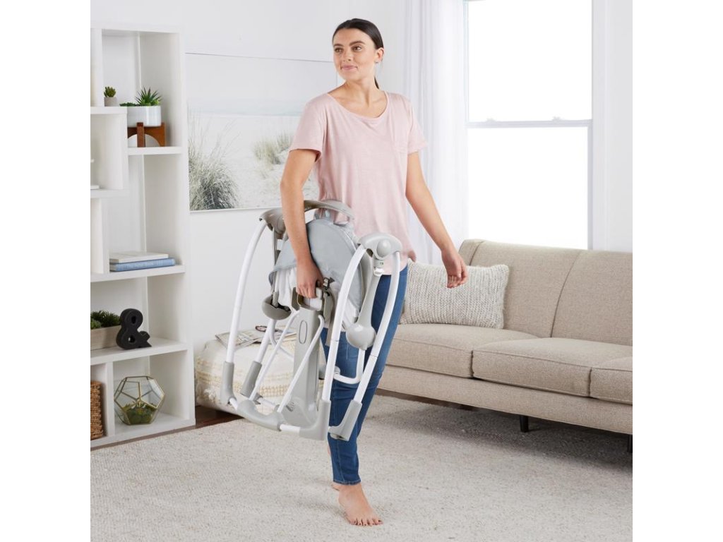Ponúka 5 rýchlostí hojdania, 12 melódií a 4 prírodné zvuky, ktoré dieťatko upokoja a zabavia. Vďaka technológii WhisperQuiet™ sa hojdačka hojdá mimoriadne ticho – nič nebude rušiť spánok malého drobca.