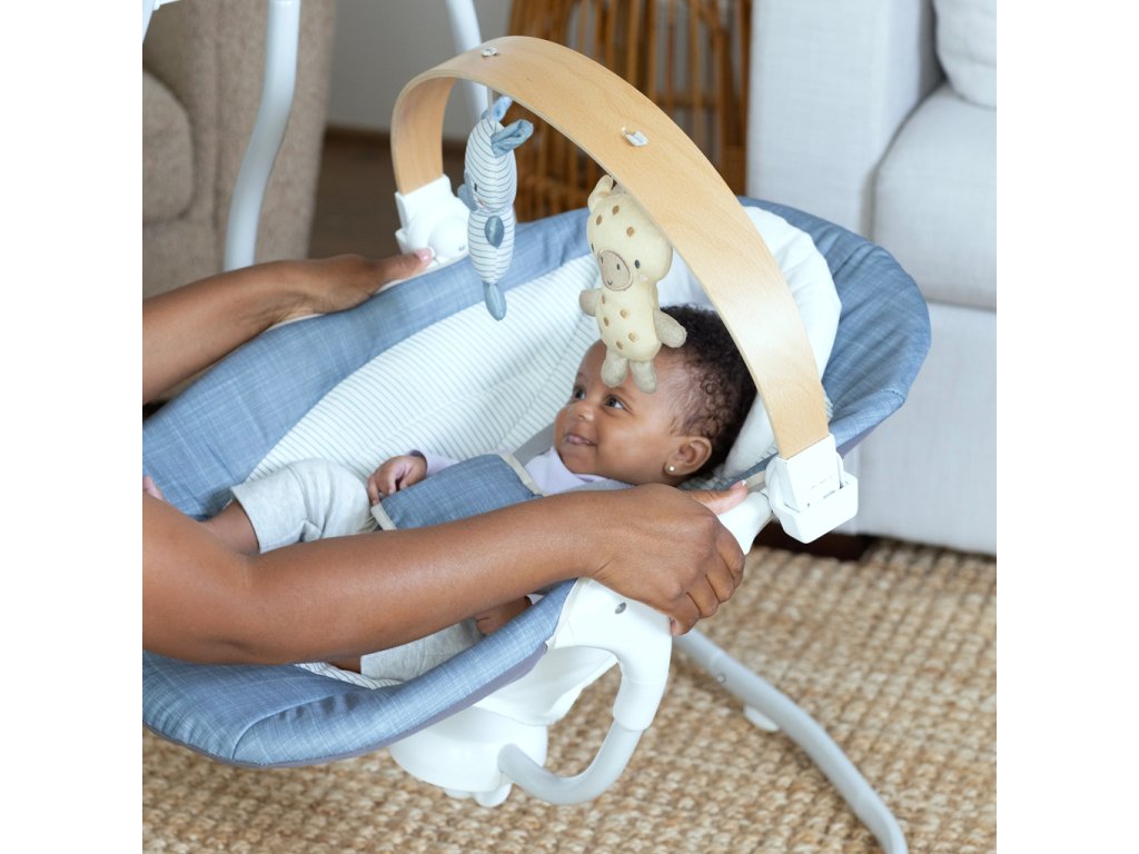 Zabavte dieťatko s kompaktnou hojdačkou Ingenuity SimpleComfort – Chambray. Vlastnosti: - Otočná a odnímateľná hrazdička – vyrobená z dreva z trvalo udržateľného zdroja – dodáva nádych luxusných detailov. - Sedadlo sa otáča o 180 stupňov a hojdá sa v 3 smeroch. - Táto vysokovýkonná hojdačka ponúka 6 rýchlostí s našou špičkovou technológiou TrueSpeed snímania hmotnosti s časovačom a automatickým vypínaním. - 2 interaktívne hračky obsahujú leňochoda Loni a super roztomilé usmievavé slniečko, ktoré poskytujú farebné podnety na hru; hračky sú odnímateľné pre zábavu na cestách. - Motor WhisperQuiet poskytuje dieťatku pokojný zážitok z hojdania. Keď dieťatko potrebuje zabaviť, naša hojdačka má 8 melódií a 3 jemné zvuky prírody. Hojdanie a hudba sú napájané USB káblom (súčasťou balenia). - Ľahká hojdačka má kompaktný dizajn s rukoväťou a kolieskami pre ľahkú mobilitu a skladovanie. Podložka sedadla a opierka hlavy sú odnímateľné pre ľahké čistenie; obsahuje 5-bodový pás; pre vek 0-9 mesiacov alebo do 9kg. Rozmery: 92 cm (V) x 80 cm (Š) x 87 cm (D) UPOZORNENIE: Nikdy nenechajte dieťa spať v tomto výrobku Adresa dodávateľa: KIDS2 EUROPE BV 5 Keizersgracht 287, 1016 ED Amsterdam, Netherlands; +31 20 241 0934Dodatočné parametre