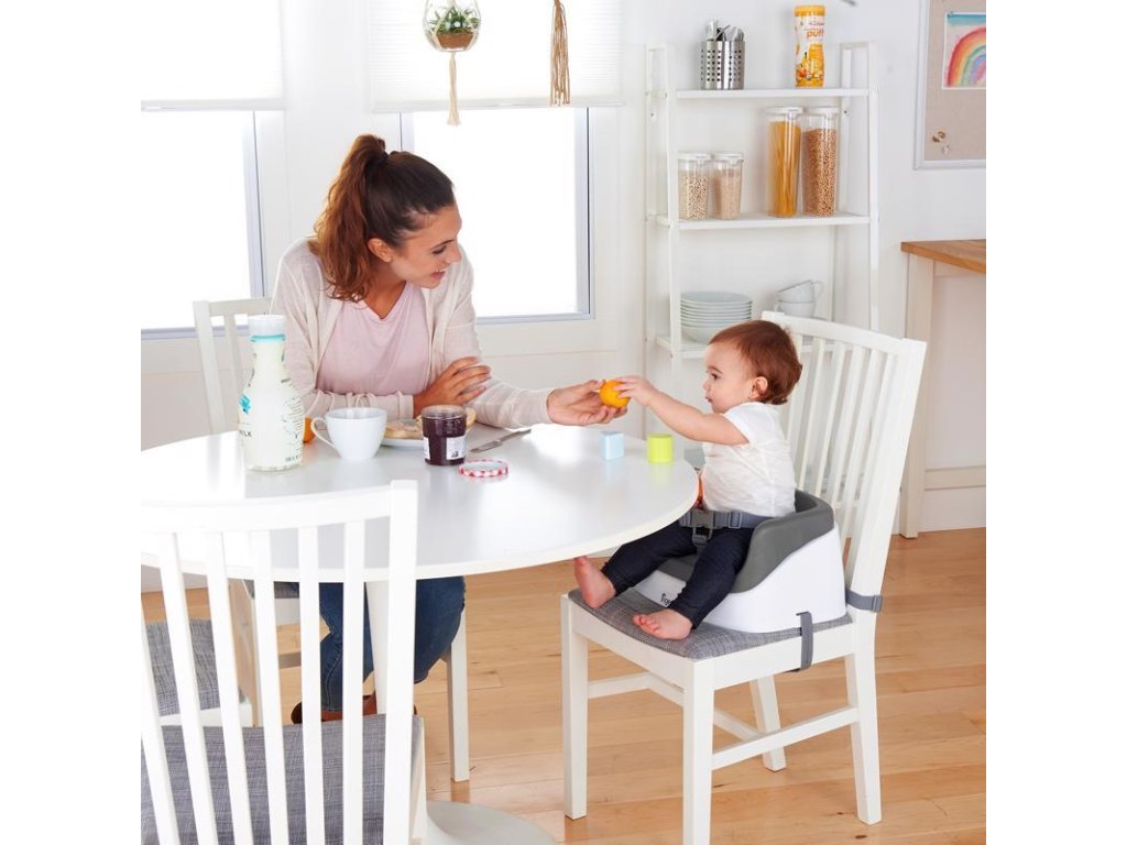 - podsedák možno bezpečnostnými popruhmi pripevniť k stoličke, čo umožňuje používať ho takmer ku každému stolu