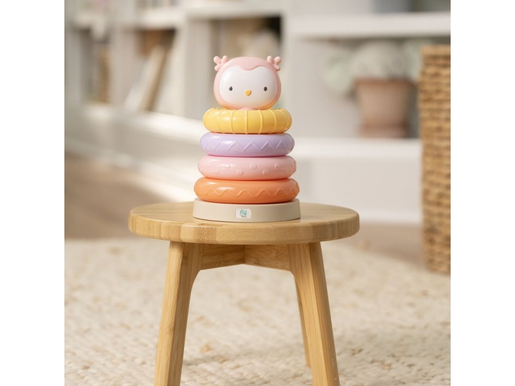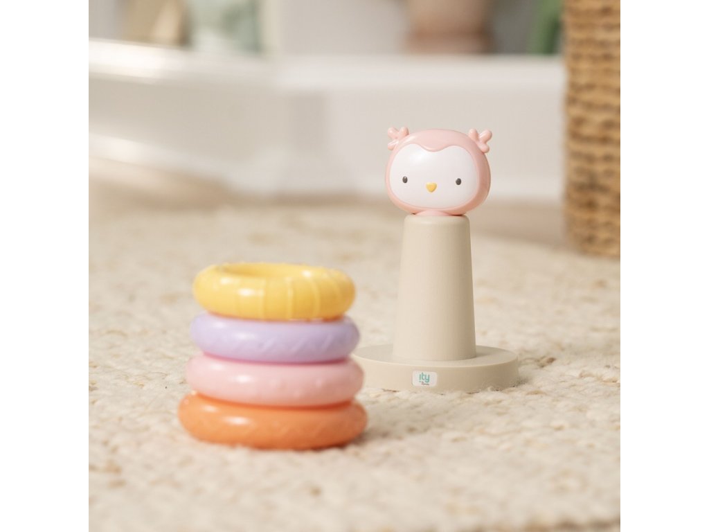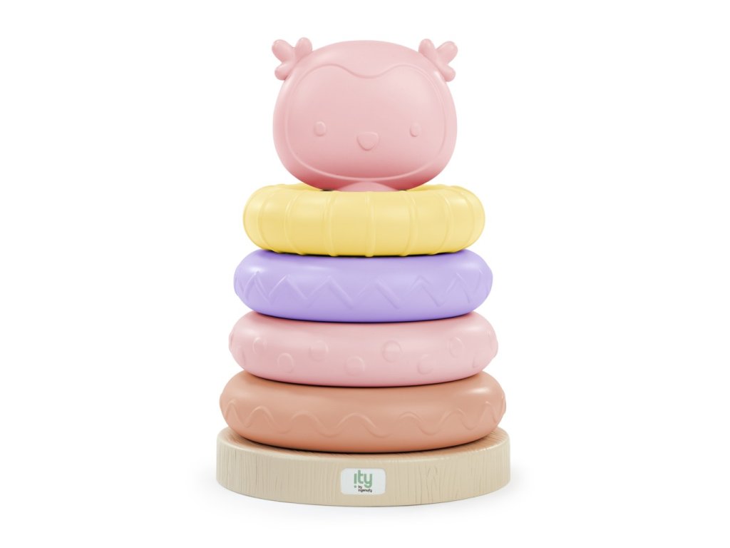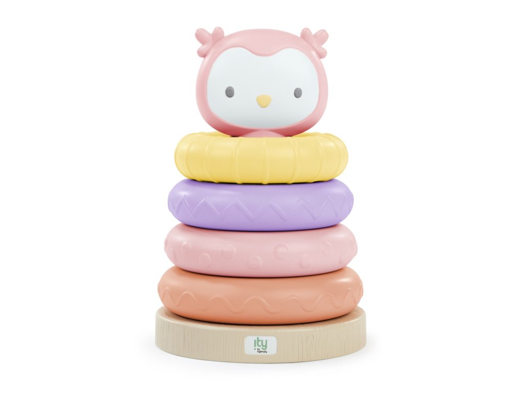 Pyramída a super roztomilý medvedík Nate sa dodávajú so stojanom z umelého dreva a 4 farebnými, ľahkými prstencami s viacerými textúrami bez obsahu BPA, ktoré sa bábätku ľahko držia a stohujú. Skladanie pyramídy je super spôsob, ako pomôcť deťom pri rozvíjaní zmyslových schopností, ako je učenie farieb, a pomáhajú stimulovať vývoj hrubej motoriky prostredníctvom stohovania. Táto skladacia hračka pre deti sa hodí k ostatným postavičkám inšpirovaným lesom v kolekcii ity by Ingenuity, Rozmery a špecifikácie: - Rozmery: 16,5 x 11 x 11 cm - Materiál: 100% Plast - Vek bábätka: 6m+ Adresa dodávateľa: KIDS2 EUROPE BV 5 Keizersgracht 287, 1016 ED Amsterdam, Netherlands; +31 20 241 0934