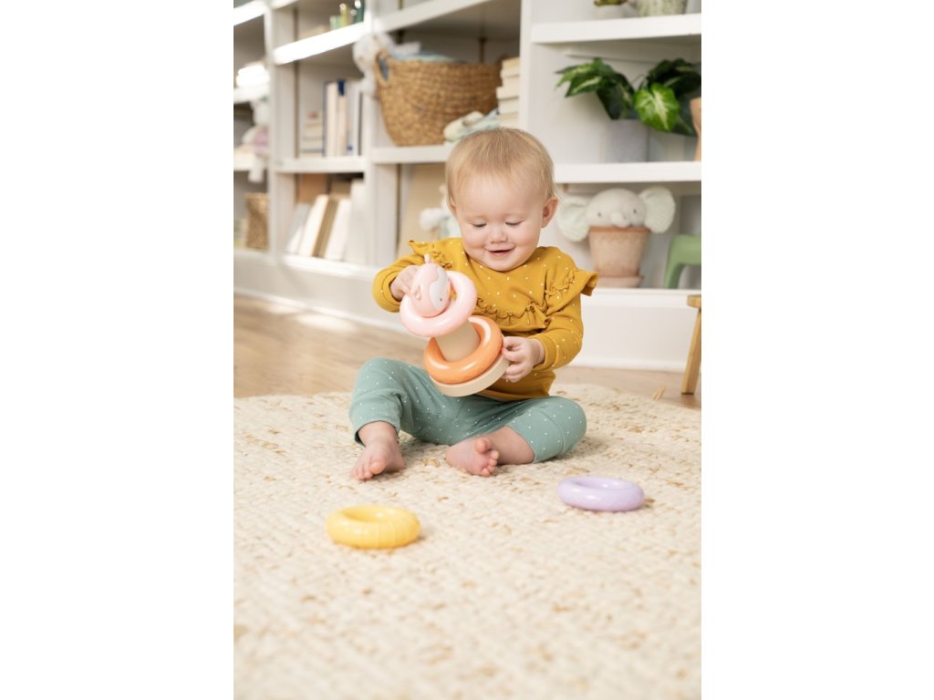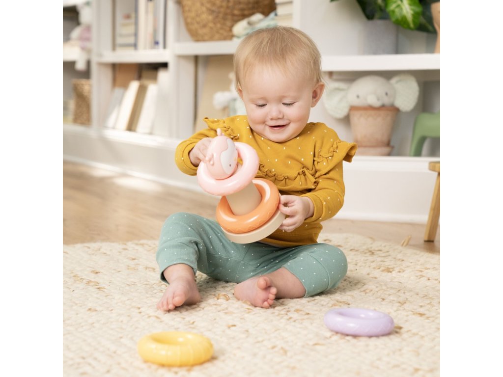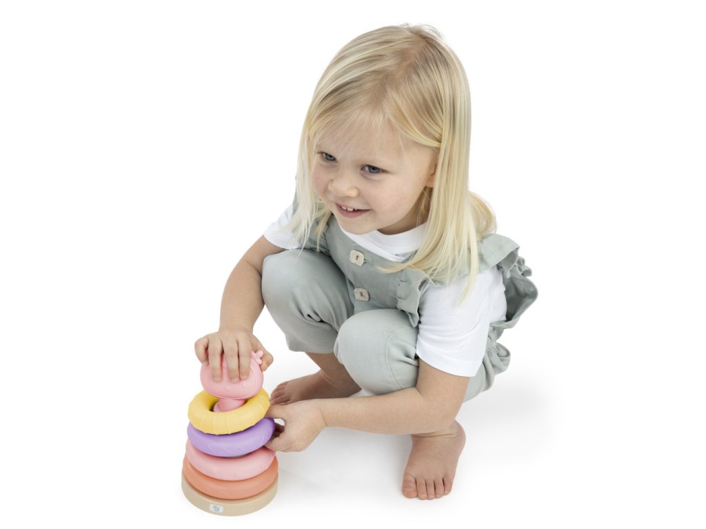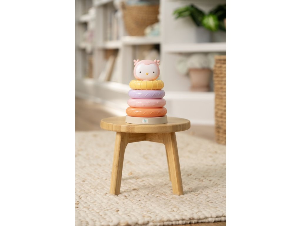 Pyramída a super roztomilý medvedík Nate sa dodávajú so stojanom z umelého dreva a 4 farebnými, ľahkými prstencami s viacerými textúrami bez obsahu BPA, ktoré sa bábätku ľahko držia a stohujú. Skladanie pyramídy je super spôsob, ako pomôcť deťom pri rozvíjaní zmyslových schopností, ako je učenie farieb, a pomáhajú stimulovať vývoj hrubej motoriky prostredníctvom stohovania. Táto skladacia hračka pre deti sa hodí k ostatným postavičkám inšpirovaným lesom v kolekcii ity by Ingenuity, Rozmery a špecifikácie: - Rozmery: 16,5 x 11 x 11 cm - Materiál: 100% Plast - Vek bábätka: 6m+ Adresa dodávateľa: KIDS2 EUROPE BV 5 Keizersgracht 287, 1016 ED Amsterdam, Netherlands; +31 20 241 0934
