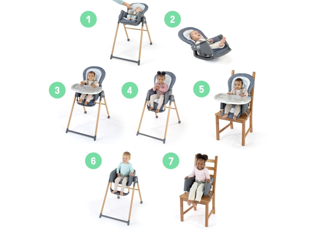 Univerzálna konvertibilná vysoká detská stolička 7v1 od Ingenuity Vám dopraje možnosť, aby Vaše dieťatko bolo pri Vás od jeho prvého dňa. Jedálenská stolička Ingenuity Proper Positioner 7v1 ponúka 7 režimov, v ktorých rastie s dieťaťom od narodenia až do 5 rokov. Podporuje správne držanie tela, čím podporuje lepšie trávenie od novorodenca až po batoľa. 7 režimov stoličky predstavuje: detské lehátko; odnímateľné hojdacie lehátko, vysoká stolička v plnej veľkosti s jedálenským pultíkom; detská jedálenská stolička, ktorá umožňuje dieťaťu pripojiť sa k rodine pri stole bez pultíku; polstrovaná stolička s pripojením sa na bežnú jedálenskú stoličku; stolička pre batoľa; detský podsedák, ktorý možno pripevniť na bežnú jedálenskú stoličku. Prvé 2 režimy sa starajú o rané štádiá bábätka (0-6 mesiacov): detské lehátko napodobňuje držanie mamy pri kŕmení z fľaše, zatiaľ čo vôbec prvé odnímateľné hojdacie lehátko Ingenuity udržuje dieťa v pokoji. Ergonomický dizajn stoličky pomáha s posturálnou stabilitou, zatiaľ čo viacpolohová nastaviteľná opierka nôh zabraňuje viseniu nôh a ponúka väčšie pohodlie, aby sa dieťa mohlo sústrediť na jedlo. Dizajn sedenia 90/90/90 udržuje nohy dieťaťa v optimálnej polohe v 90-stupňovom uhle, čím podporuje pohodlie a správne držanie tela. Sedaciu podložku a vložku možno prať v práčke. Udržujte dieťa v bezpečí s 5-bodovým bezpečnostným pásom, kým ho nebudete používať ako detskú stoličku, potom použite s 3-bodovým bezpečnostným pásom. Bezpečnosť testovaná a schválená treťou stranou. Vlastnosti: - 7 režimov použitia: detské lehátko a odnímateľné hojdacie lehátko sú určené pre novorodencov do 6 mesiacov; vysoká stolička v plnej veľkosti s jedálenským pultíkom (do 15 kg); detská jedálenská stolička, ktorá umožňuje dieťaťu pripojiť sa k rodine pri stole bez pultíku; polstrovaná stolička s pripojením sa na bežnú jedálenskú stoličku (do 23 kg); stolička pre batoľa (do 23 kg); detský podsedák (do 23kg). - Nastaviteľný 5-bodový alebo 3-bodový bezpečnostný pás udržuje dieťa v bezpečí. - Potlač z umelého dreva na kovových nohách sedačky dopĺňa dizajn domácnosti. - 3-polohový pultík má vstavaný držiak na pohár a vyberateľnú vložku, ktorá je vhodná do umývačky riadu. - Viacpolohová nastaviteľná opierka nôh. - Vhodné pre deti od narodenia do 5 rokov. Rozmery: 88,9 cm x 62,23 cm x 115,57 cm Adresa dodávateľa: KIDS2 EUROPE BV 5 Keizersgracht 287, 1016 ED Amsterdam, Netherlands; +31 20 241 0934Dodatočné parametre