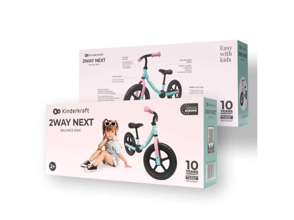 Odrážadlo 2WAY NEXT umožňuje prirodzeným spôsobom rozvíjať rovnováhu, motorické funkcie a priestorovú predstavivosť. Vlastnosti: - rozvíja rovnováhu - zaručuje motorický rozvoj - ergonomická a ľahká oceľová konštrukcia - pre deti už od 80 cm výšky - bezpečný rozsah otáčania riadidiel - veľké kolesá – absorbujú otrasy - regulovaná výška sedadla a riadidiel - moderný dizajn - vysoko kvalitné prevedenie bez vyčnievajúcich prvkov Učenie hrou - rozvoj – dieťa prirodzeným spôsobom samostatne udržuje rovnováhu a motoricky sa rozvíja. Správne zlepšuje obojstrannú motorickú - koordináciu, pomáha zlepšiť vnímanie priestoru alebo schopnosť posudzovať vzdialenosť a rýchlosť. - schopnosti – jazda na odrážadle je najlepším tréningom pred jazdou na tradičnom bicykli – prirodzená zmena bez nutnosti inštalácie bočných koliesok. - zábava – jazda na odrážadle je intuitívne a prináša veľa zábavy. Praktické riešenie - regulácia – výšku riadidiel a sedadla je možné prispôsobiť výške dieťaťa. Najnižšia možná výška sedadla (31 cm) a tiež nízky rám sú výsledkom, že je odrážadlo vhodné pre deti už od 80 cm výšky. - sedadlo – zaručuje komfort počas jazdy – mäkké polstrovanie predchádza odreninám. - riadidlá – pevné rukoväte, ktoré sú vyrobené z protišmykového materiálu. Riadidlá majú špeciálne zabezpečenie, ktoré obmedzuje uhol otočenia, čím predchádza pádu dieťaťa. Sú tiež regulovateľné v rozsahu 52-59 cm, vďaka čomu je možné odrážadlo prispôsobiť výške dieťaťa. - kolesá s ložiskami – veľká, 12 palcové kolesá s peny EVA, ktorá absorbuje otrasy bez ohľadu na povrch, charakterizujú sa vysokou odolnosťou proti opotrebeniu. Bezpečnosť na prvom mieste - ergonomická a ľahká konštrukcia – zaručuje plnú stabilitu a veľmi kvalitné prevedenie, ktoré zaručuje plnú bezpečnosť. - odolný rám – oceľový rám, ktorý vydrží zaťaženie do 35 kg. - prevedenie – všetky skrutky boli zakryté plastovými krytmi. - testy – bezpečnosť a kvalita sú schválené nezávislým certifikačným orgánom TUV. Výrobok je testovaný a schválený v súlade s európskymi bezpečnostnými normami EN 71-1. Špecifikácia: - značka: Kinderkraft - model: 2WAY NEXT - materiály: oceľový rám a riadidlá, kolesá z peny EVA, prvky z plastu - hmotnosť užívateľa: do 35 kg - hmotnosť produktu: 3,1 kg Návod zde: (SK) Upozornenia! Treba používať ochranné prostriedky. Nepoužívať v dopravnej premávke. Hračka by sa mala používať na rovných povrchoch bez prekážok. Počas používania sa odporúča neustály dozor dospelej osoby. Tento produkt je určený pre jedného používateľa s maximálnou hmotnosťou 35 kg. Adresa dodávateľa: Supl4kraft sp. z o.o. ul. Tatrzanska 1/5, 60-413 Poznan, Poland support@kinderkraft.com www.kinderkraft.comDodatočné parametre