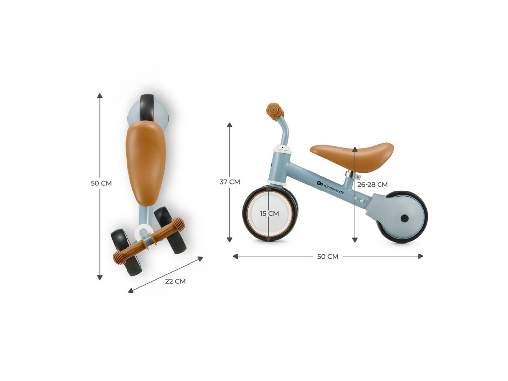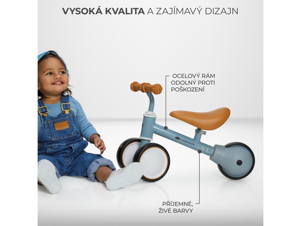 CUTIE je mini-trojkolka, ktorá je spojením originálneho, moderného dizajnu, bezpečnej konštrukcie a výhod balančného bicykla a trojkolky. Bol vytvorený špeciálne pre malých prieskumníkov. Je vhodný pre deti od 1 roka! Protišmykové gumové rukoväte TPR poskytujú dieťaťu pevné uchopenie a nízka hmotnosť (iba 1,8 kg) umožňuje mini bicykel rodičom ľahko prenášať. Ľahké kolieska z protiporeznej peny EVA a nastaviteľná výška sedadla (26-28 cm) urobia každú prechádzku nezabudnuteľnou! Výhody Bezpečnosť: - Protišmykové rukoväte sú vyrobené z nedráždivej a odolnej gumy TPR, ktorá sa ľahko udržuje čistá. - Mini bicykel CUTIE je vybavený blokovaním stočenia riadidiel - rodič sa nemusí obávať nekontrolovaného pádu, keď sa dieťa začne učiť otáčať pri jazde. - Bezpečnosť výrobku bola overená a potvrdená nezávislým laboratóriom Intertek. - Bicykel bol vyrobený a schválený v súlade s najnovšími európskymi bezpečnostnými normami EN 71-1. Pohodlie: - Mini bicykel CUTIE sa prispôsobuje potrebám dieťaťa. To umožňuje nastavenie sedadla v rozmedzí 26-28 cm. - Zadné koliesko z peny EVA s ložiskom urobí z jazdy po hrboľatom teréne skutočné potešenie! - Nízka hmotnosť, kompaktné rozmery - CUTIE váži iba 1,8 kg. Je to veľká výhoda pre rodičov, ktorí často cestujú a bicykel prenášajú z miesta na miesto. Okrem toho má malé rozmery, vďaka ktorým sa dá ľahko vziať na výlet. Funkčné použitie: - CUTIE váži iba 1,8 kg, vďaka čomu ho vaša ratolesť bude môcť ľahko vyzdvihnúť, prenášať alebo viesť. Ľahkú a plynulú jazdu uľahčuje aj zadné koleso s ložiskami. Vďaka oceľovému rámu a kolieskam z neporeznej peny EVA je CUTIE mimoriadne odolný. - Živé farby a mačiatka na sedadle a ráme povzbudzujú deti k aktívnej hre. Vaše dieťa môže rozvíjať svoju predstavivosť pri spoznávaní sveta okolo seba a jazda na CUTIE bude pre neho skvelým tréningom pred dobrodružstvami s prvým balančným bicyklom. - Ideálny tlačiaci bicykel, na ktorom sa vaše dieťa bude učiť a hrať - CUTIE bol navrhnutý s ohľadom na tých najmenších, takže jeho konštrukcia je navrhnutá tak, aby sa vaše dieťa naučilo udržiavať si rovnováhu a vyvažovať ju svojím telom. Technické parametry: Materiály: - rám: oceľ, - rukoväte: TPR guma, - kolieska: EVA pena. Rozmery: - dĺžka: 50 cm, - výška: 37 cm, - šírka riadidiel: 22 cm, - priemer koliesok: 15 cm, - výška do sedadla: 26-28 cm. - Vek: od 1 roka - Nosnosť: 15 kg - Hmotnosť: 1,8 kg Na výrobok sa vzťahuje 10-ročná záruka (po registrácii) (SK) Upozornenia! Treba používať ochranné prostriedky. Nepoužívať v dopravnej premávke. Produkt nie je vhodný pre deti staršie ako 36 mesiacov. Nedostatočná veľkosť produktu. Hračka by sa mala používať na rovných povrchoch bez prekážok. Počas používania sa odporúča neustály dozor dospelej osoby. Tento produkt je určený pre jedného používateľa s maximálnou hmotnosťou 15 kg. Adresa dodávateľa: Supl4kraft sp. z o.o. ul. Tatrzanska 1/5, 60-413 Poznan, Poland support@kinderkraft.com www.kinderkraft.comDodatočné parametre