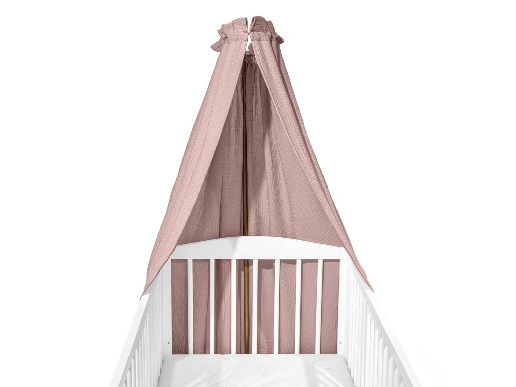 Baldachýn z jednoliateho bavlneného mušelínu je elegantným a praktickým doplnkom do každej detskej izby. Ľahký, priedušný materiál vytvára útulné „hniezdo“, ktoré pomáha dieťatku pokojne zaspať a zároveň poskytuje jemnú ochranu pred slnkom či hmyzom.