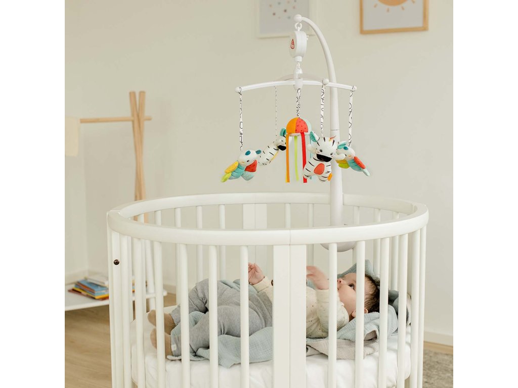 Dizajn kolotoča uľahčuje pripevnenie k detskej postieľke - figúrky je možné ľahko vybrať pre hranie a umývanie.