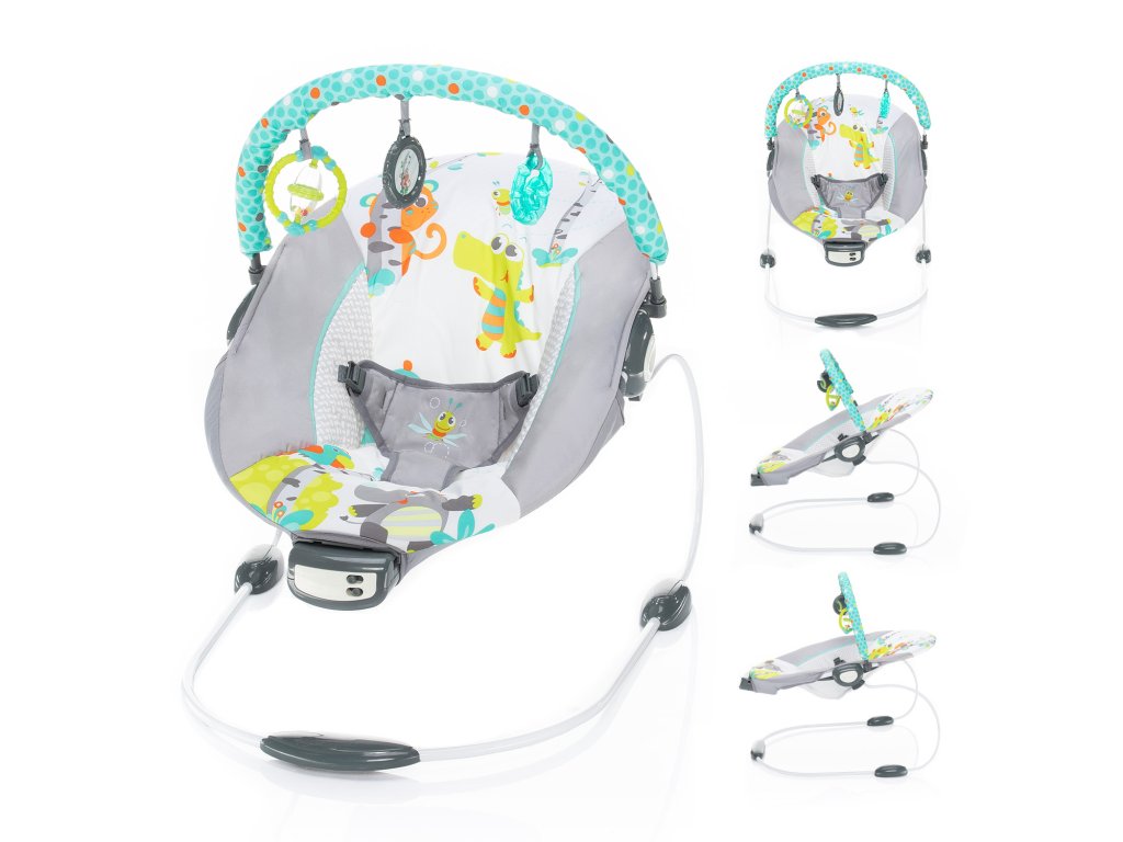 Vibračné lehátko Happy je vyrobené vo výraznejších veselých farbách a prispieva k stimulácii zmyslov malých detí od narodenia do 9 kíl. Oceníte ju vo chvíľach, keď dieťatko nespí a chcete ho upokojiť, zabaviť a zároveň zapojiť do rodinného diania. Deti totiž príjemné „posedenie“ v lehačce milujú, najmä keď ju môžu svojimi pohybmi samy rozhýbať. Kombinácia kolísania, vibrácií, melódií a hračiek vám zaistí, že sa váš anjelik nudiť nebude.