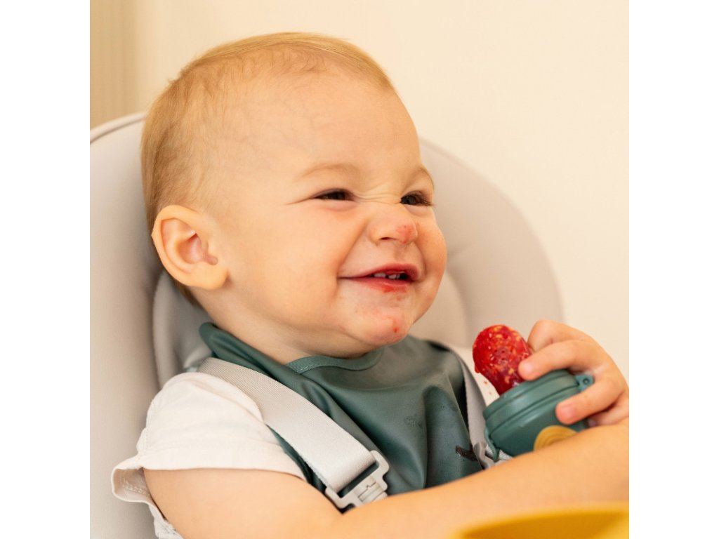 Fruzi nie je len pomocník pri prvých príkrmoch – je aj jemná silikónová hryzačka, ktorá prináša úľavu od bolesti ďasien počas prerezávania zúbkov.