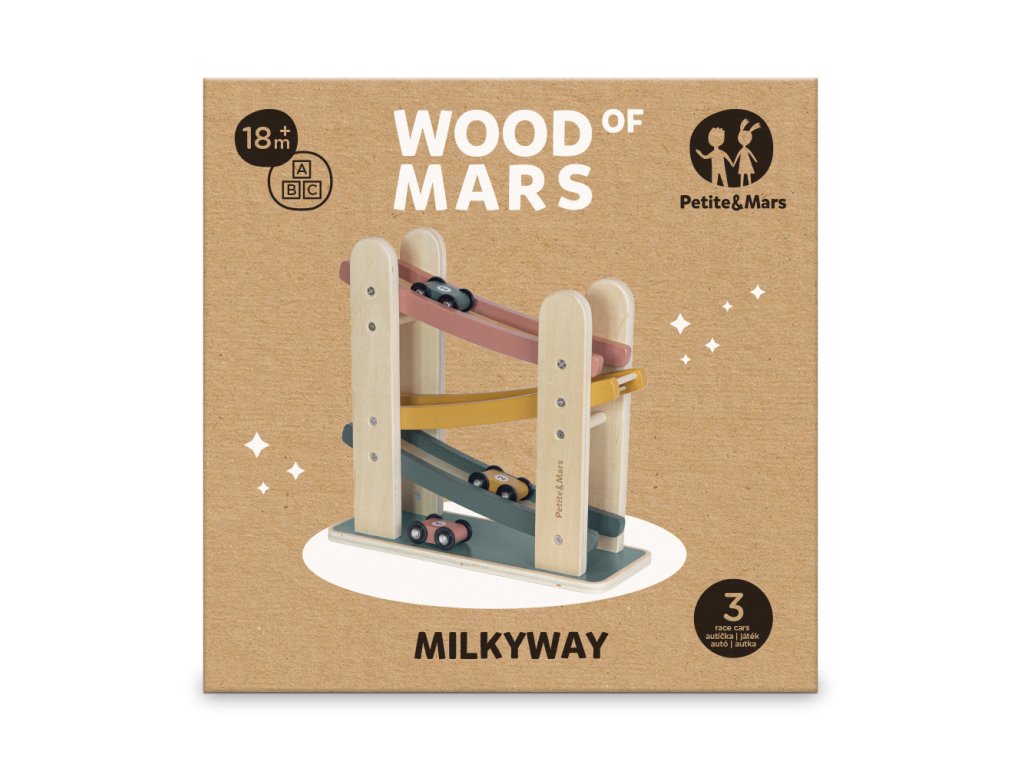 PETITE&MARS Hračka drevená pretekárska dráha Milky Way Wood of Mars 18m+ Aurora Pink
